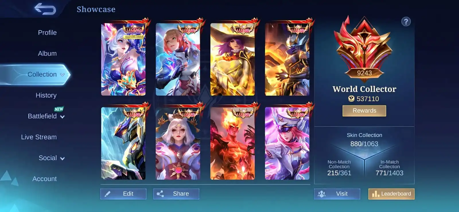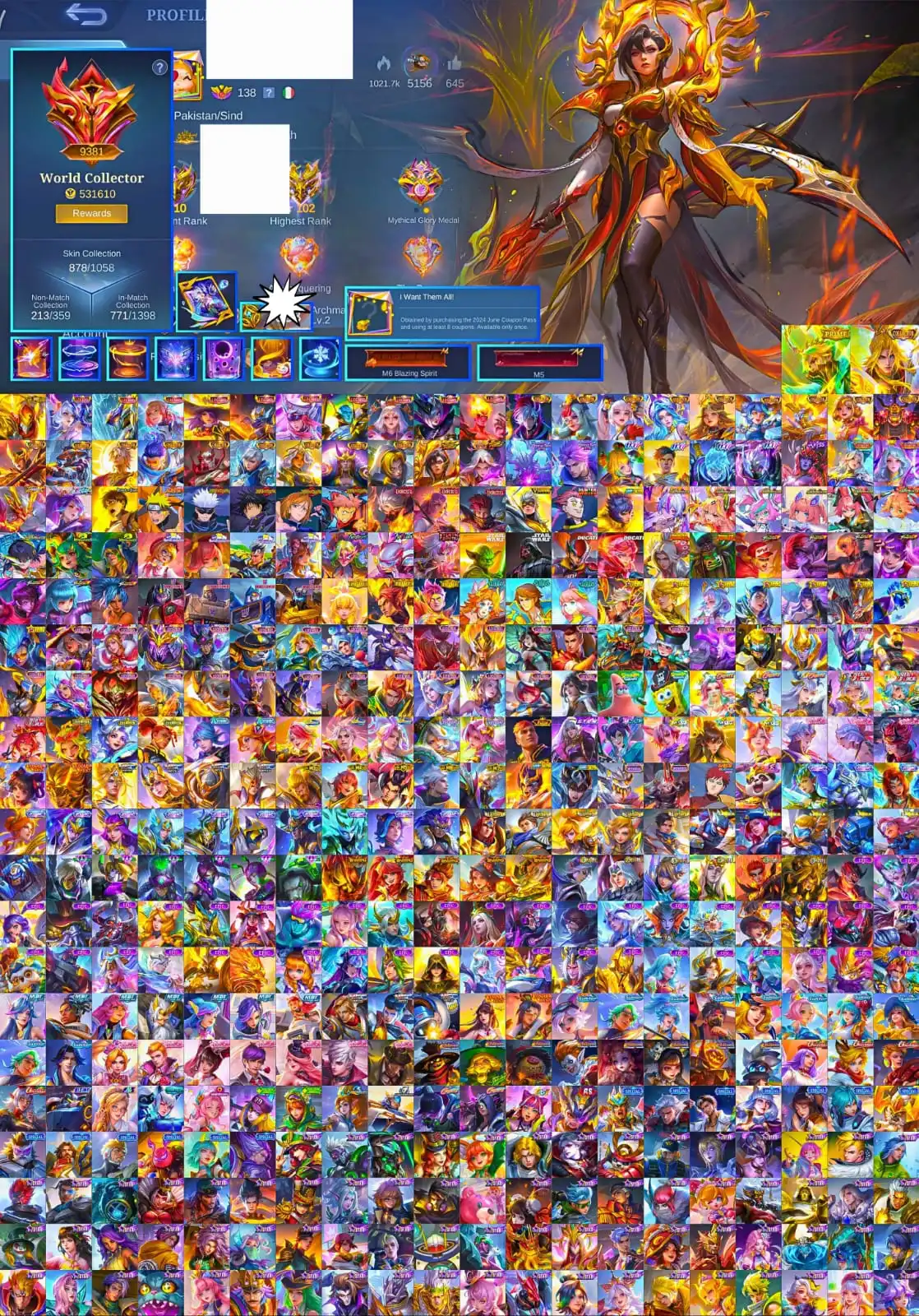 [IOS/ANDROID] CEL LVL 138 | 131 HEROES | 880 SKINS | BEST IN THE WORLD COLLECTOR | GLOBAL RANK WITH 530K POINTS | 7 EPIC RECALL | 10 LEGEND ⸱ 19 COLLECTOR ⸱ JJK ⸱ ABYSS ⸱ EXORCIST