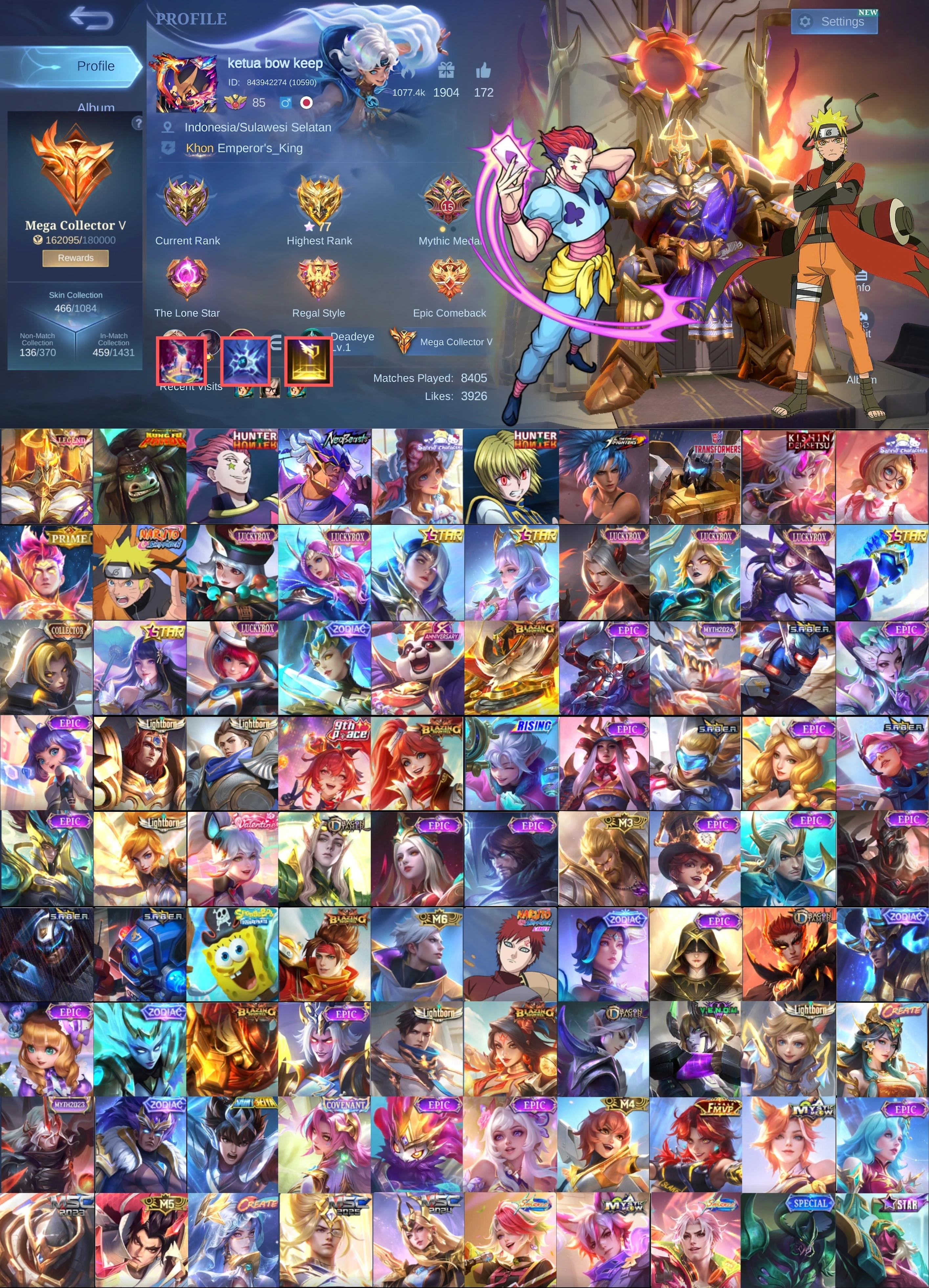 Mega Collector 🔶️ 466 Skins 🔶️ Naruto 🔶️ Hisoka x Kurapika 🔶️ Legend Skin 🔶️ Max Emblems 🔶️ Exclusive Collection 🔶️ Both Android-iOS 🔶️ Instant Delivery