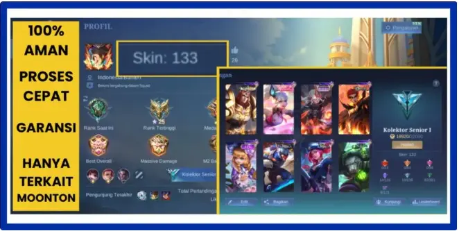 ML459 // Cheap and Safe Sultan Account ⸱ 133 Skins, 99 Heroes, Miya Hero, Epic 5 Rank, 46% Winrate
