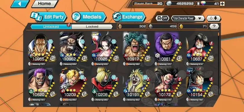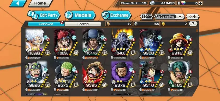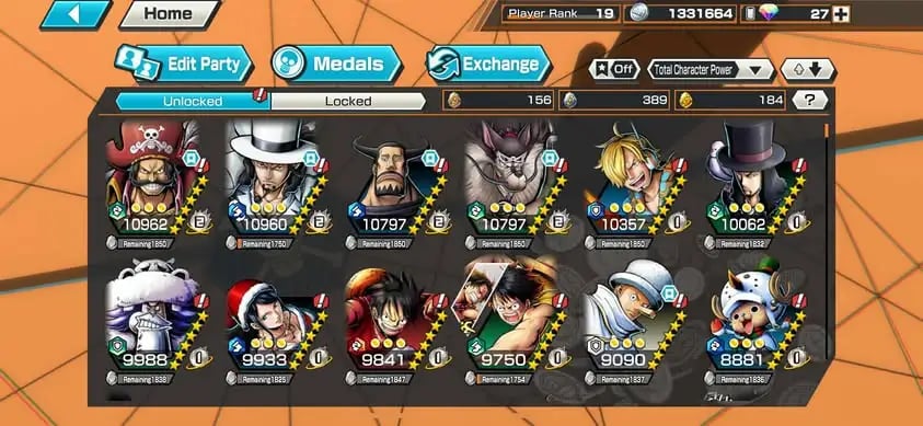 [3386][IOS+ANDROID] 9 EX / Garp + Shanks Light + Whitebeard + Zoro + 2 Big Mom + Roger Dark + Sabo + Yamato , Support 138% , Good Medal