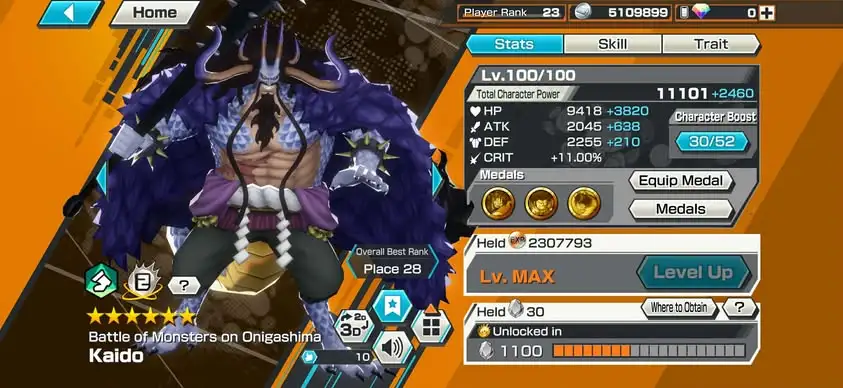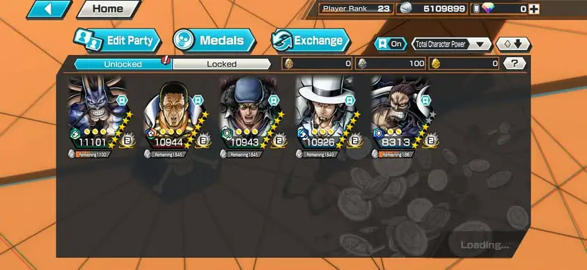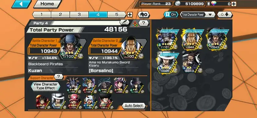 [4170][IOS+ANDROID] 5 EX / Kizaru + Kuzan + Lucci + 2 Kaido , Support 139% , Good Medal