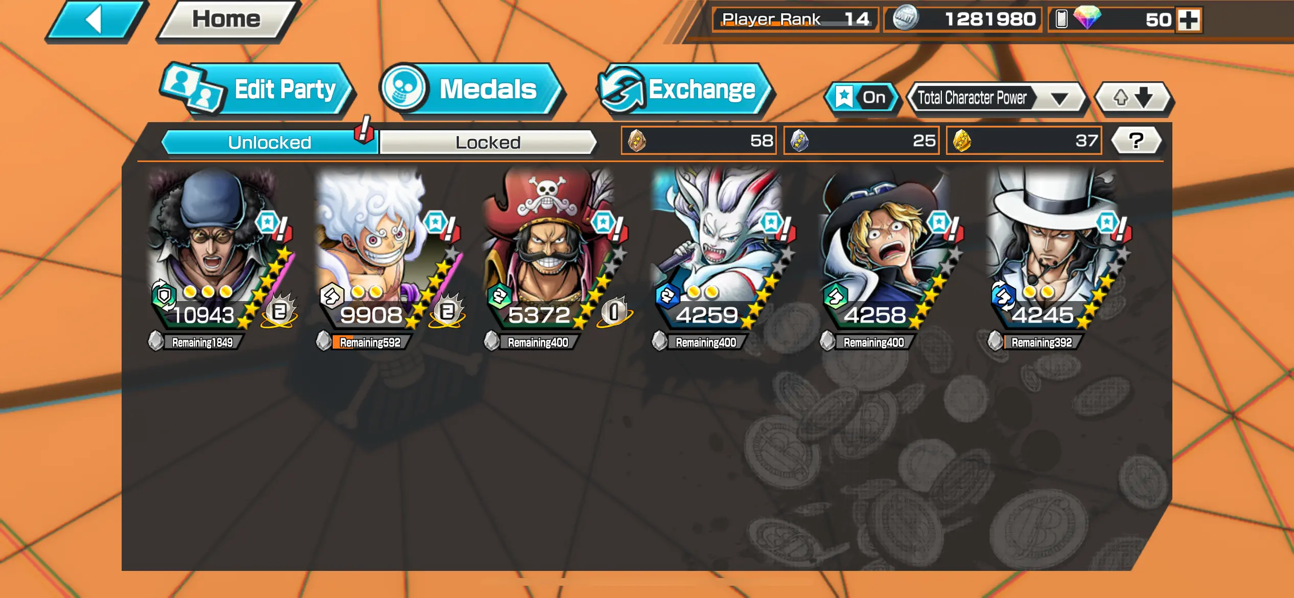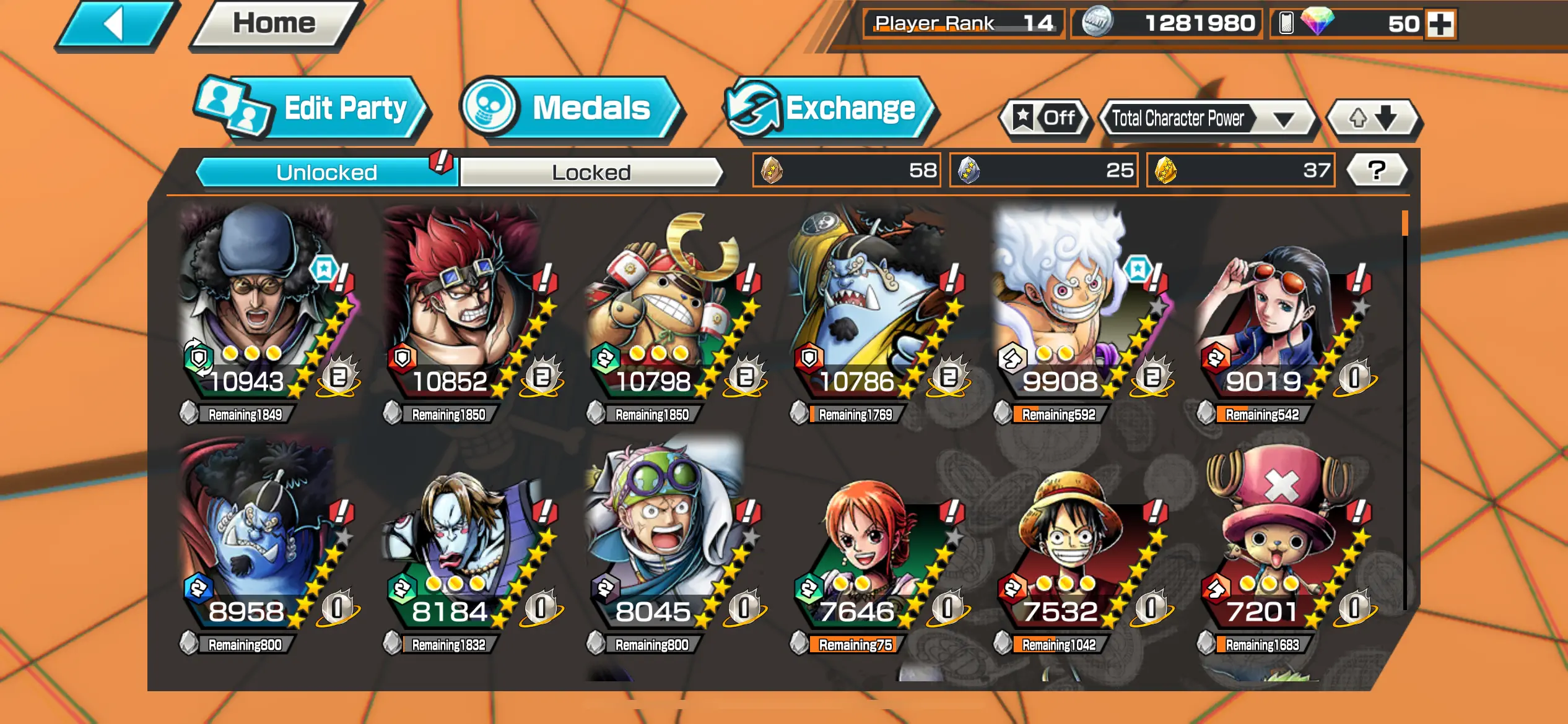 B154🔥Solo Fresh🔥6 Ex Meta 1 Max🔥Kuzan Max🔥Luffy V2🔥Roger🔥Yamato🔥Sabo🔥Rob Lucci🔥Support 123🤝Good Medal🎖️Many Medal Material🥇iOS & Android