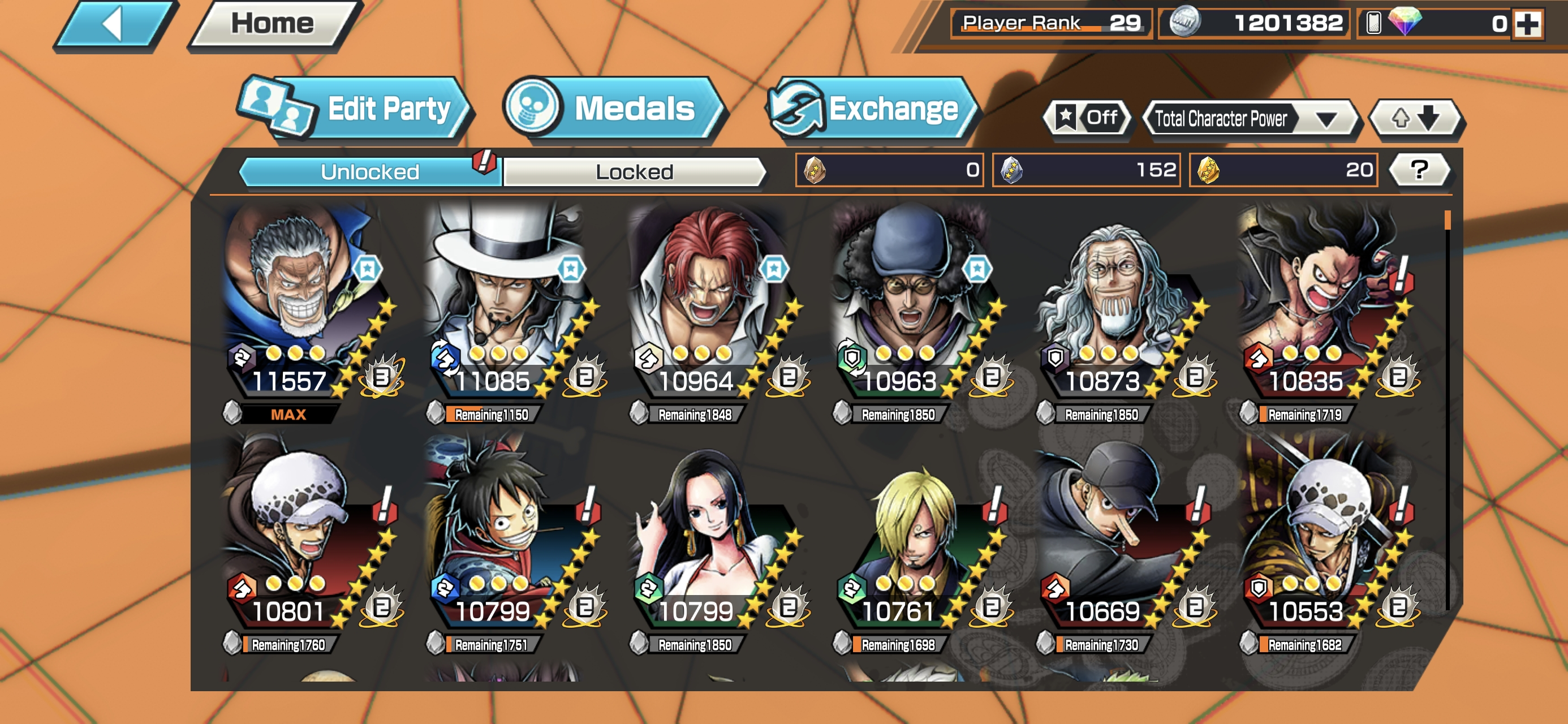 HB 6 ⸱ 5 Ex Meta 4 Max ⸱ GARP MAX FULL BOOST 3 ⸱ Rob Lucci Max Power 11K ⸱ Shanks Max ⸱ Kuzan Max ⸱ Marshall V2 ⸱ Support 145 ⸱ Good Medal ⸱ Gems ⸱ Many Medal Material ⸱ B451