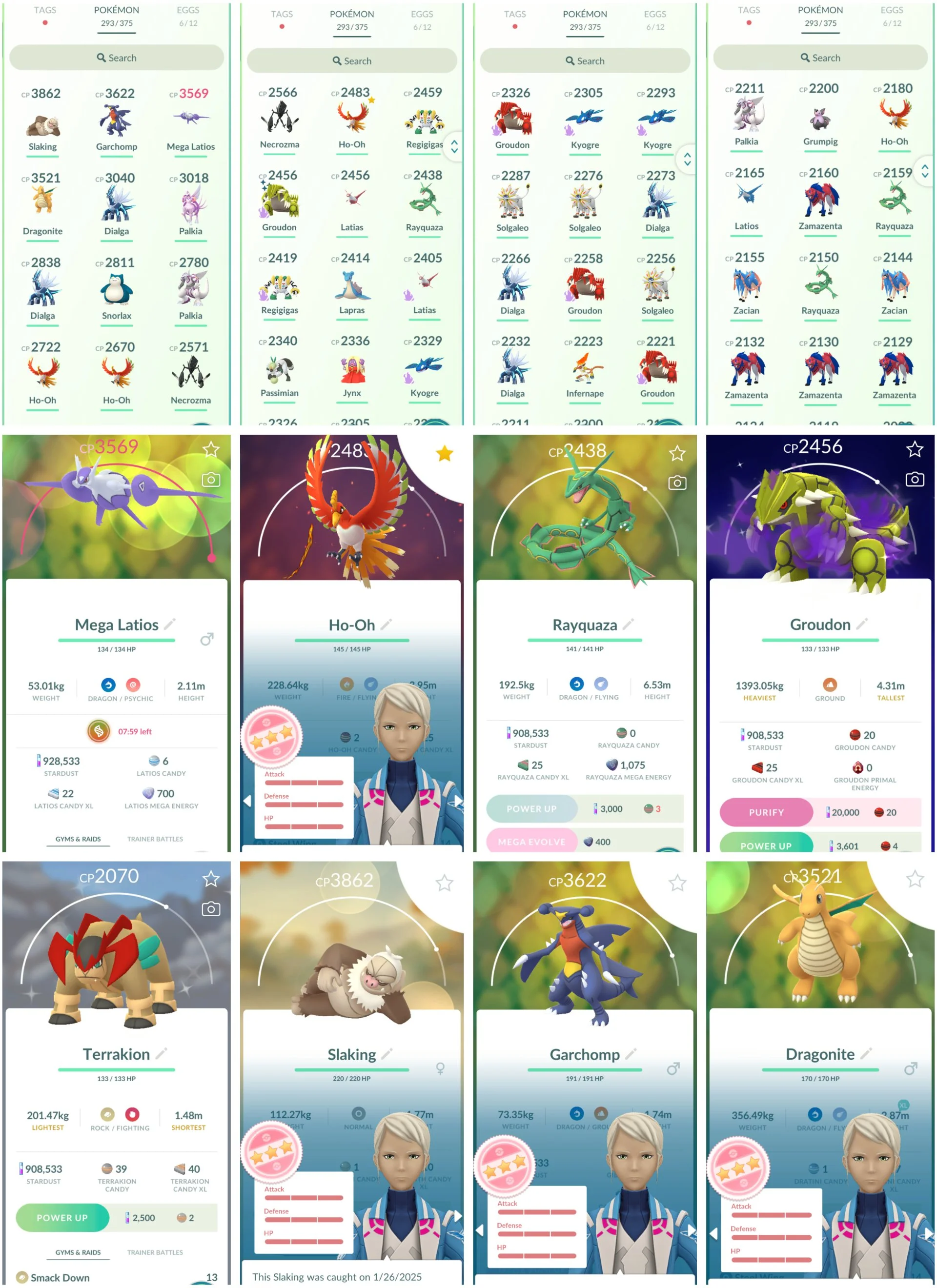 e450🔥IV100 Ho-Oh🔥IV100 3,5K+: Slaking, Garchomp, Dragonite🔥Legendary: 61🔥IV100(Hundo): 63🔥Shiny:Groudon🔥Shiny Terrakion🔥MEGA Latios
