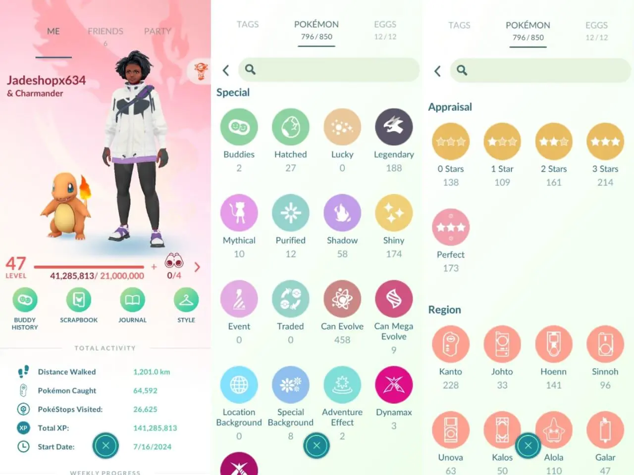 ✨ LEVEL 47 | 796 POKEMON | 188 LEGENDARY | 174 SHINY | 18M STARDUST | 173 PERFECT |15 SHINY LEGENDARY | SHINY NECROZMA COBALLION TAPU-FINI LUGIA GIRATINA REGIROCK REGISTEEL