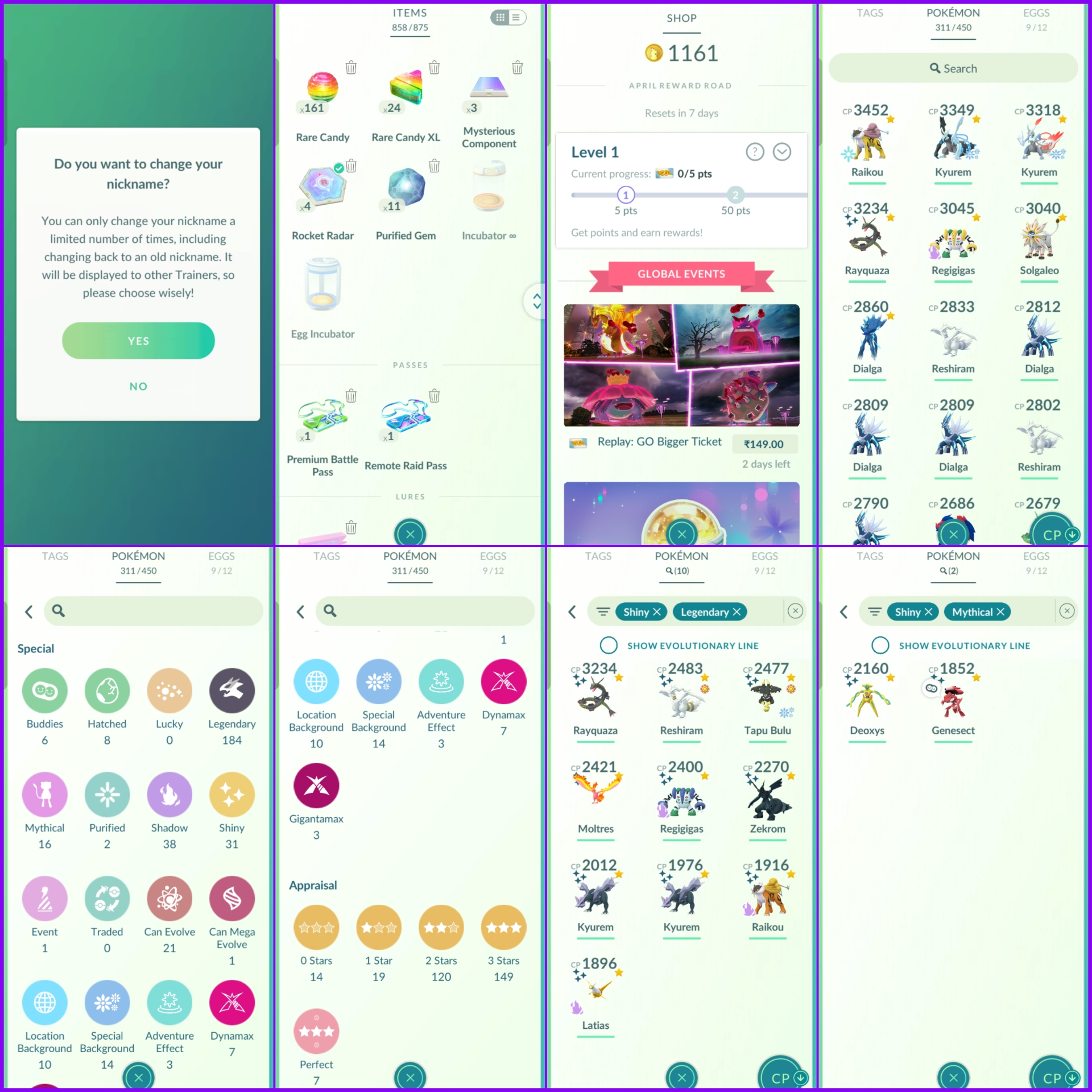 Level 60 Instinct ✨ 1100+ PokeCoins ✨ 10 Shiny Legend ✨ 184 Legend ✨ Shiny Special BG Tapu ✨ 2 Shiny Mythic ✨ 2 Fused Special BG Kyurems