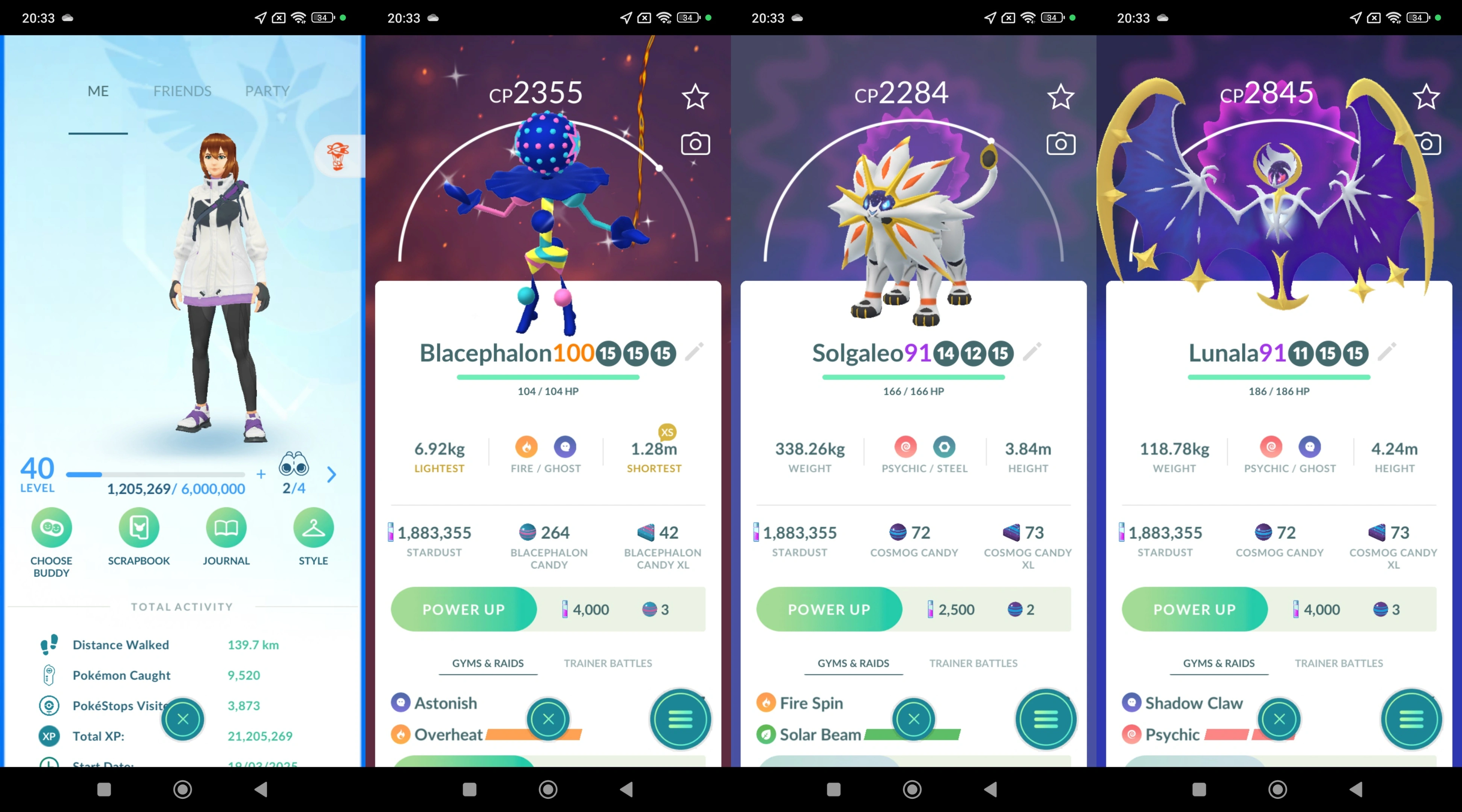 Lvl 40 🎲 (Solgaleo ☀️, Lunala 🌙) Shundo Blacephalon 🎇 71 Legendary-Beast 🐺 Zacian ⚔️ Zamazenta 🛡️ Groudon 🌋 Stakataka 🏗️ Mystic 🔮