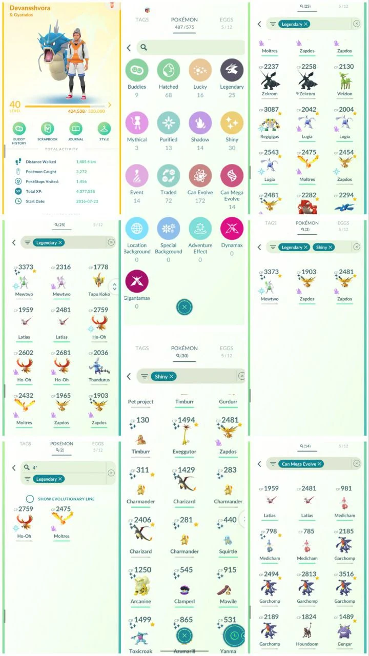 VI11 | Level40 | 25 Legendary | 30 Shiny | 3 Shiny Legend | Hundo Shadow Moltress | Hundo Ho-oh | Shiny Mewtwo | 2 Shiny Zapdos | Lugia | 14 Costume Pokemons | Mega Garchomp | Stacked Account