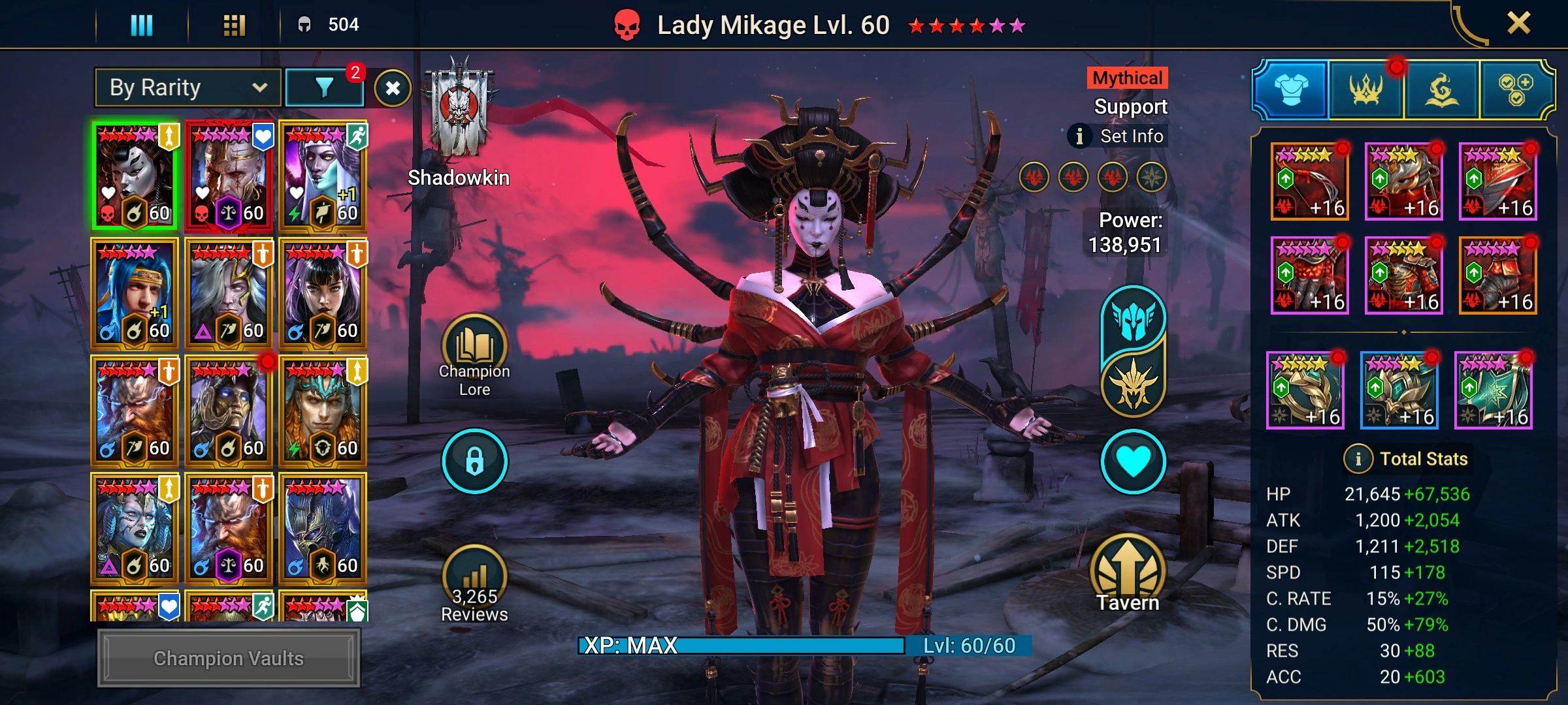 [2 Mythical Champions][10.16M] Lady Mikage,Embrys + 102 LEGENDARY (Marichka x2,Ailil(6*),Tormin,Vulkanos,Thor(5*)/x2,Gnut,Othorion x2,Elva,Fabian,Acelin,Teodor,Pythion,Staltus,April,Hephraak x2...) + 1k UNM + 25 SD/25 SHOGUN AUTO + SHARDS(101a+6v+9p+1s)