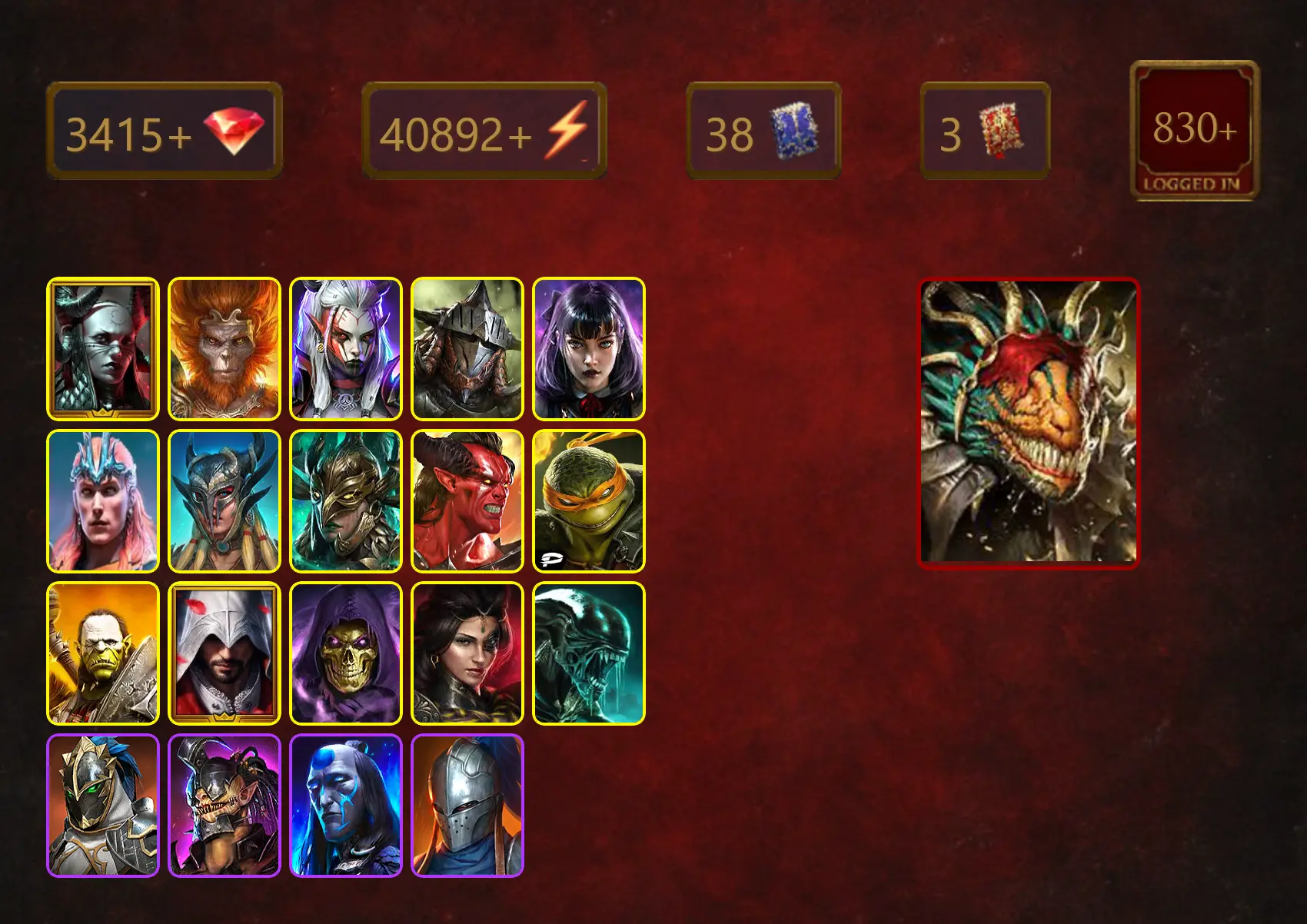 [STARTER]Lazarius+Bayek+Maranix+Wukong+Visix+Rathalos+Alice+Gliseah Soulguide+Loki+Oella+Eostrid Dreamsong+Scyl+40Epics