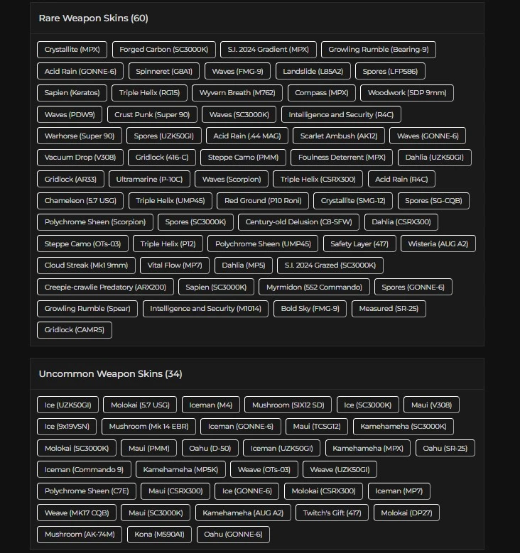 164 LVL ⸱ 33X BLACK ICES ⸱ 5X UNIVERSALS ⸱ 33X SEASONALS ⸱ 16X ELITES ⸱ 30X PILOT PROGRAMS ⸱ 72 OPERATORS ⸱ FA