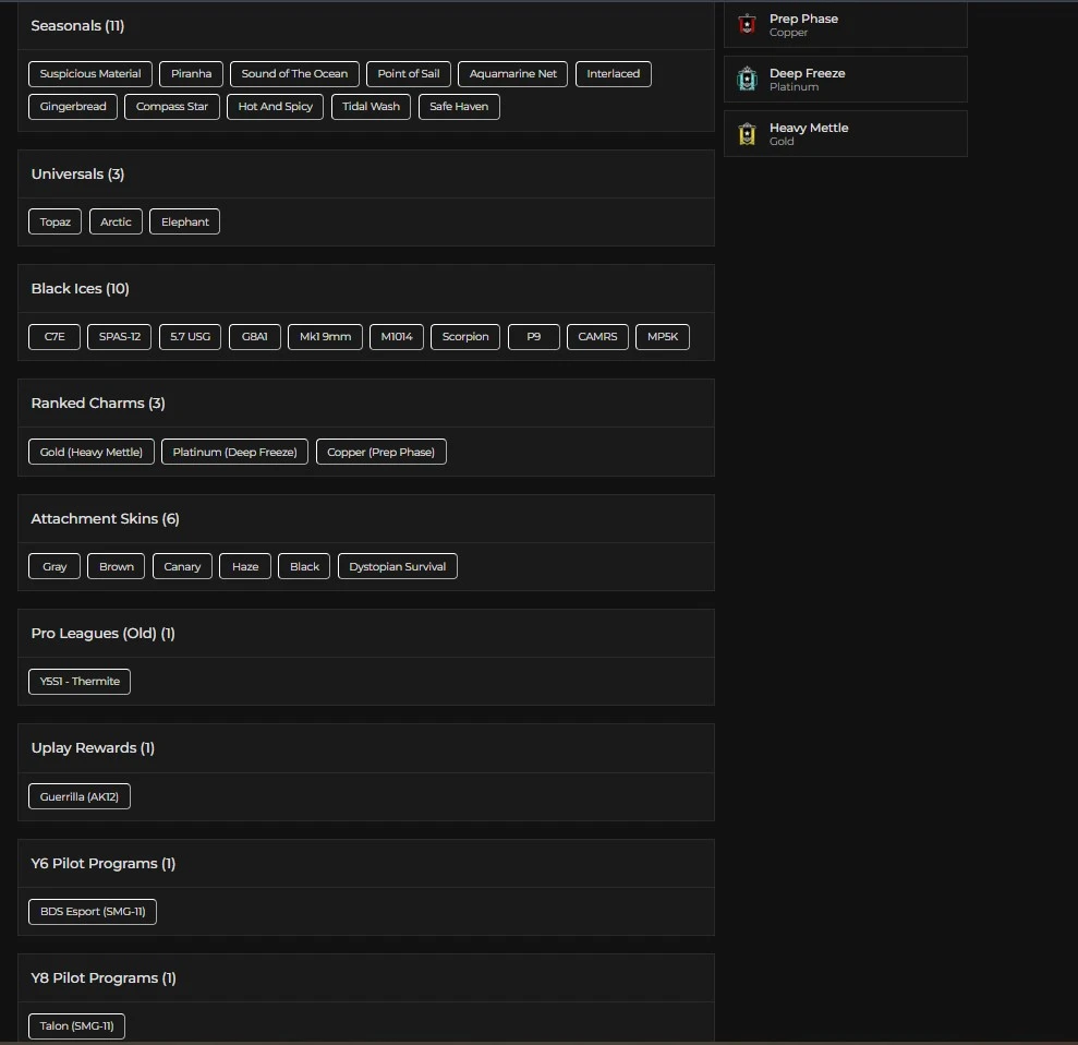 [UPLAY] 123 LVL ⸱ 10X BLACK ICES ⸱ 3X UNIVERSALS ⸱ 11X SEASONALS ⸱ 1X ELITES ⸱ 68 OPERATORS ⸱ 22K RENOWN ⸱ FA