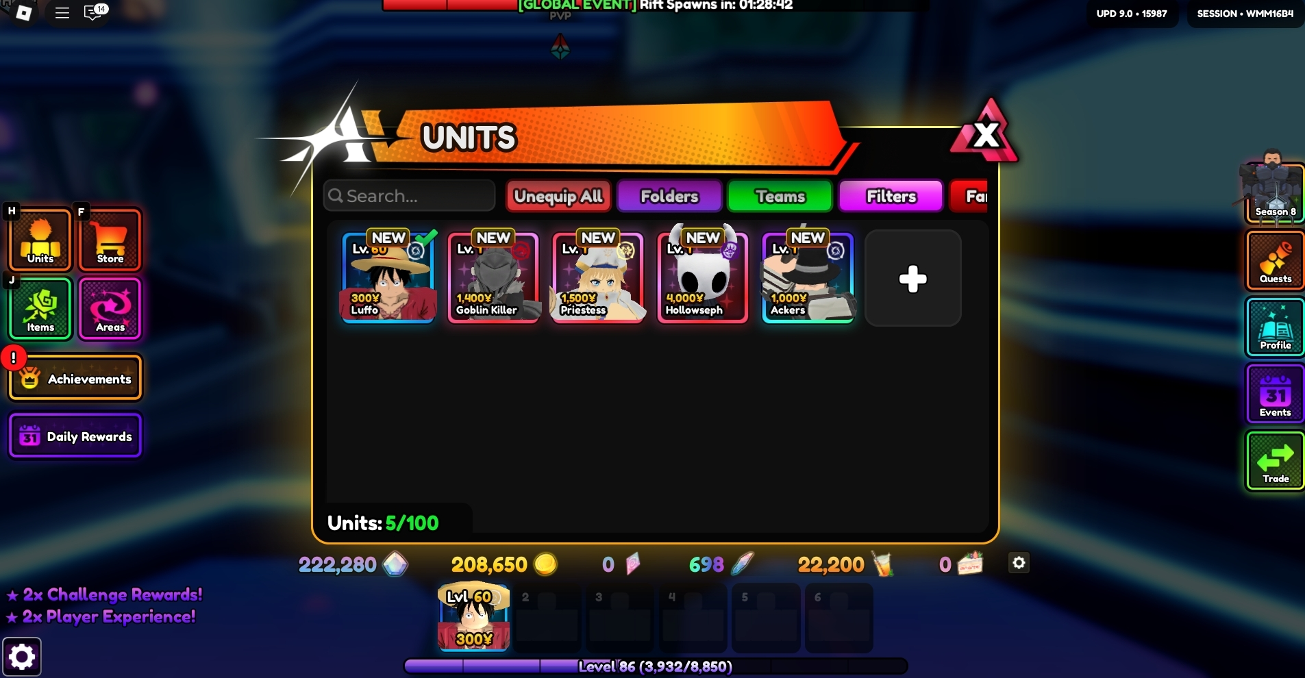 Anime Vanguards ⸱ 86 LV ⸱ 222 K Gems ⸱ 698 Trait Rolls ⸱ Hollowseph ⸱ Priestess ⸱ Goblin Killer / 🌟 Ackers INSTANT DELIVERY #16
