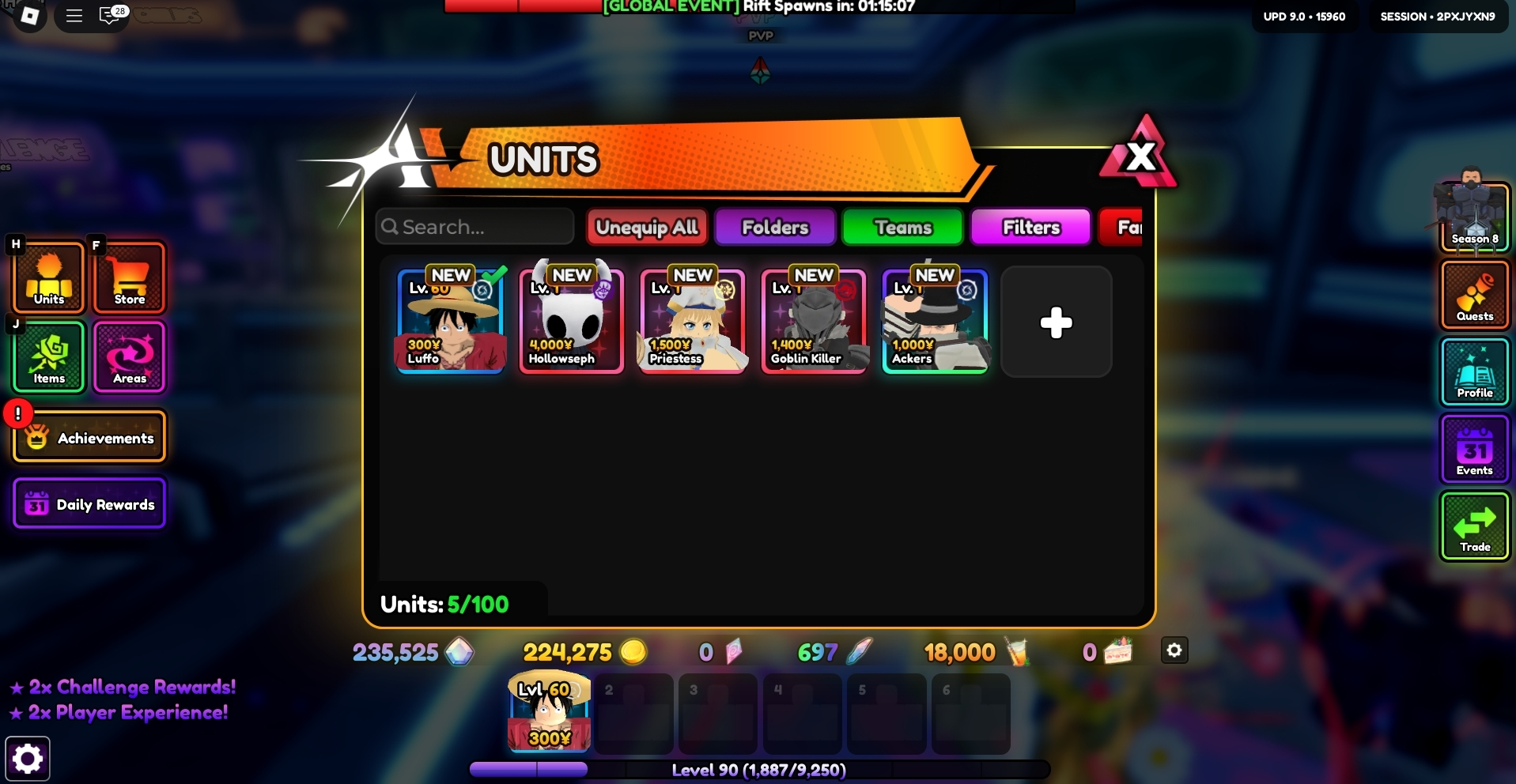 Anime Vanguards ⸱ 90 LV ⸱ 235 K Gems ⸱ 697 Trait Rolls ⸱ Hollowseph ⸱ Priestess ⸱ Goblin Killer / 🎱 Ackers INSTANT DELIVERY #23
