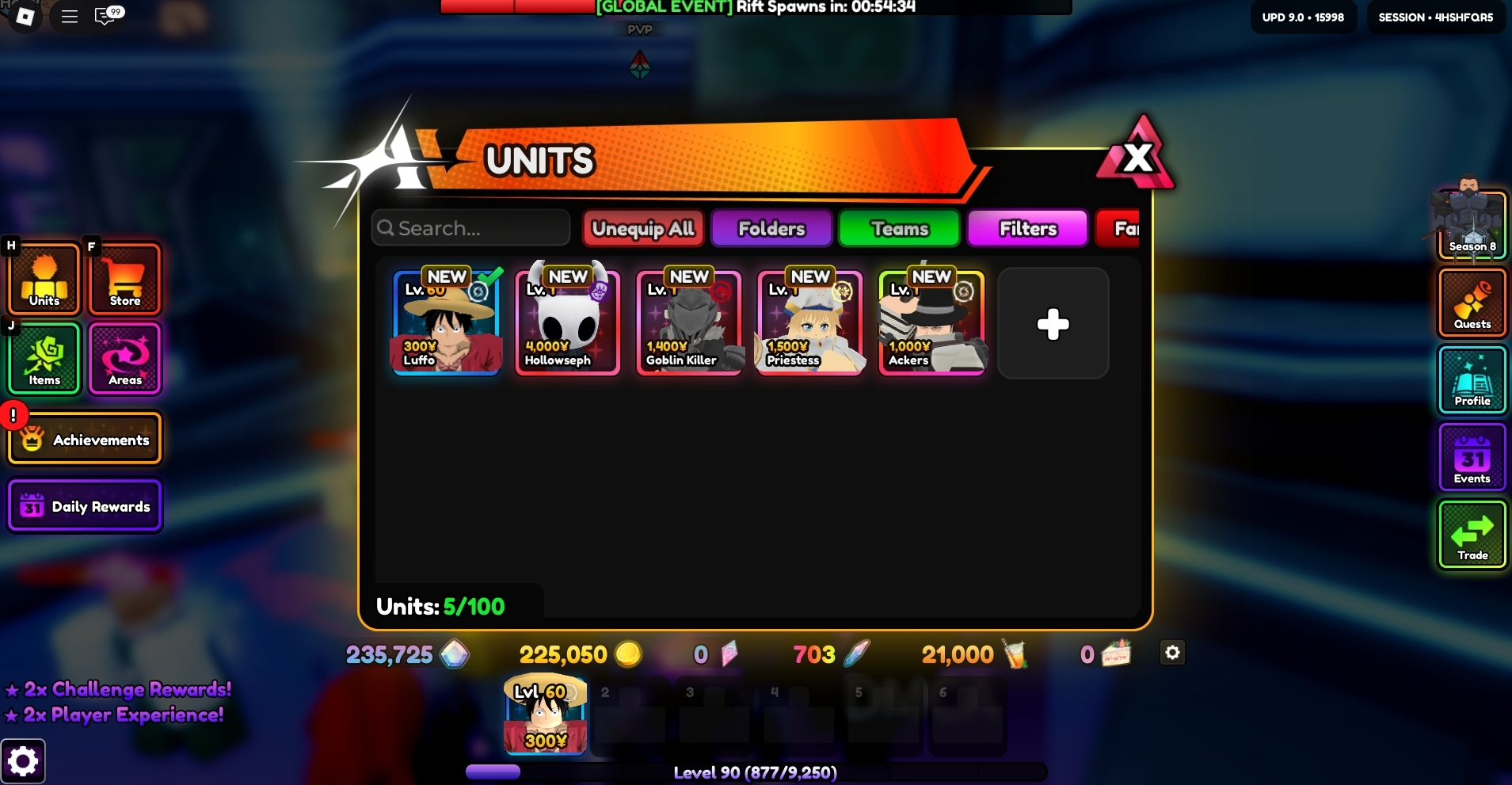 Anime Vanguards ⸱ 90 LV ⸱ 235 K Gems ⸱ 703 Trait Rolls ⸱ Hollowseph ⸱ Priestess ⸱ Goblin Killer / 🌺 Ackers INSTANT DELIVERY #30