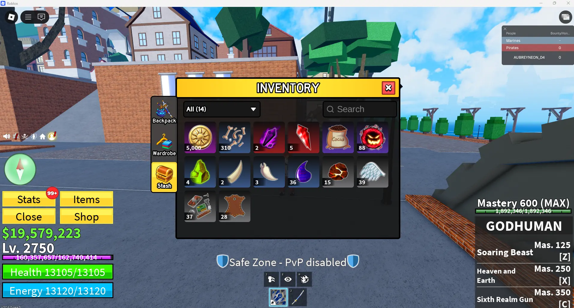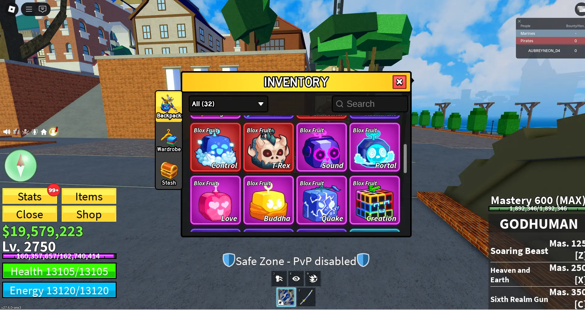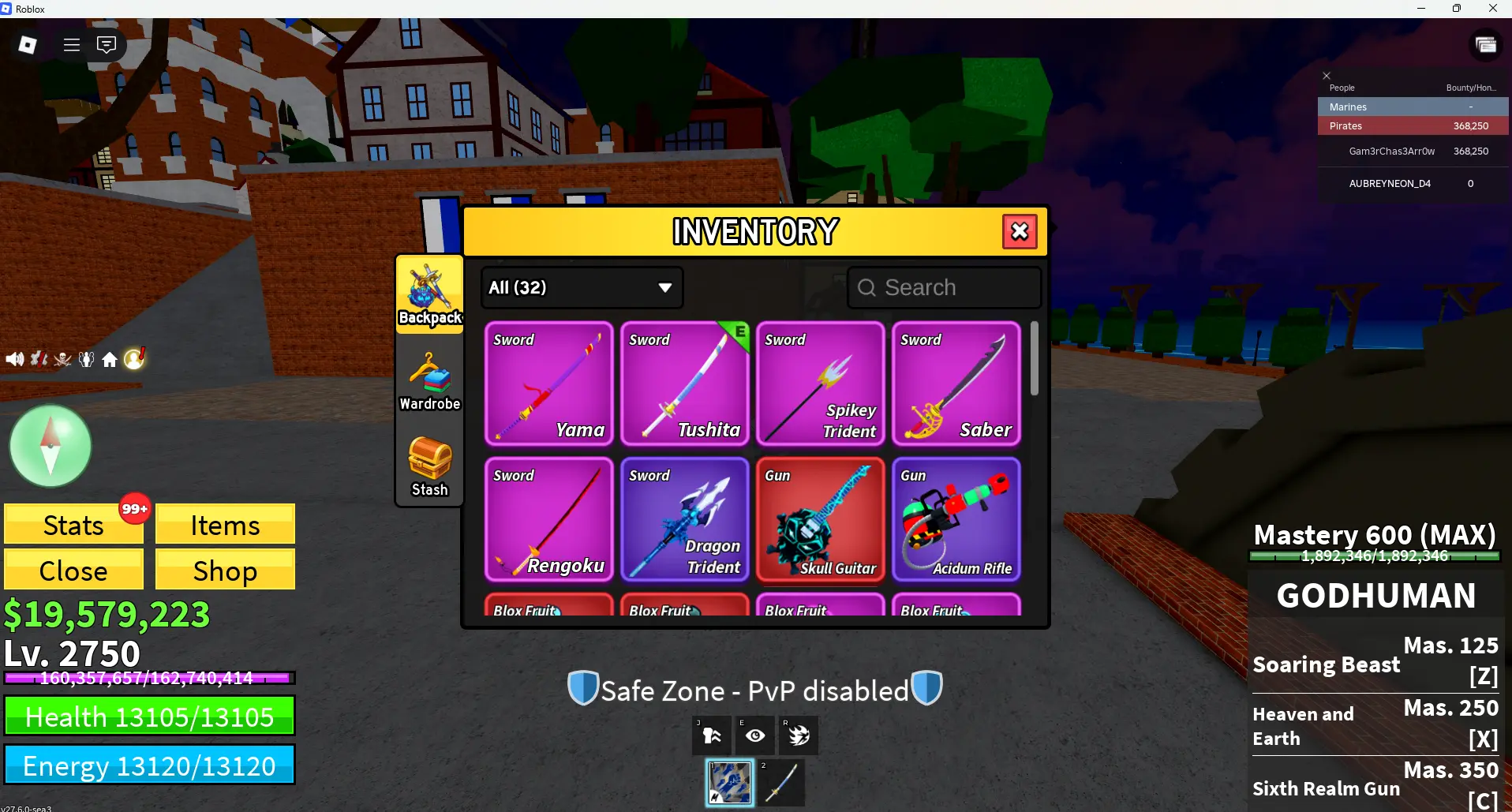[ Blox Fruits ] Level 2750 + GODHUNMAN + Skull Guitar +T-rex+| 💫Instant Delivery💫