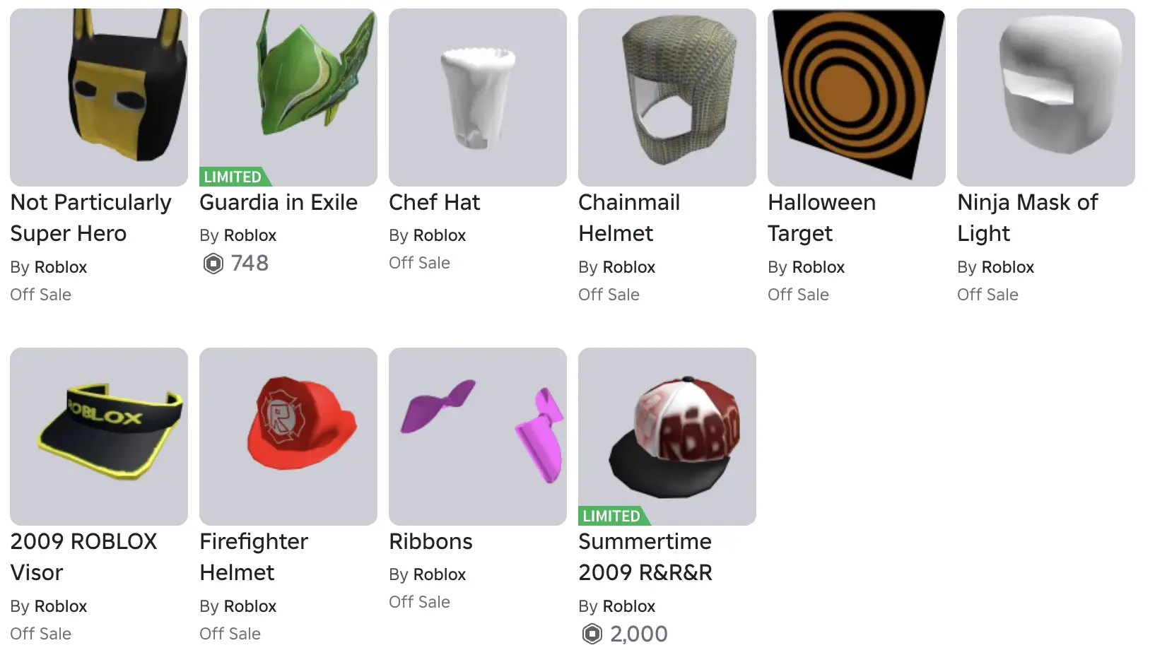 ROBLOX 2009 Account π₯ 11+ Offsales & Limiteds π₯ Halloween Target + Not Particularly Super Hero + Firefighter Helmet + Chef Hat + Ribbons + 2009 ROBLOX Visor + Ninja Mask of Light + Summertime 2009 R&R&R | 250+ Robux SPENT | Unverified β