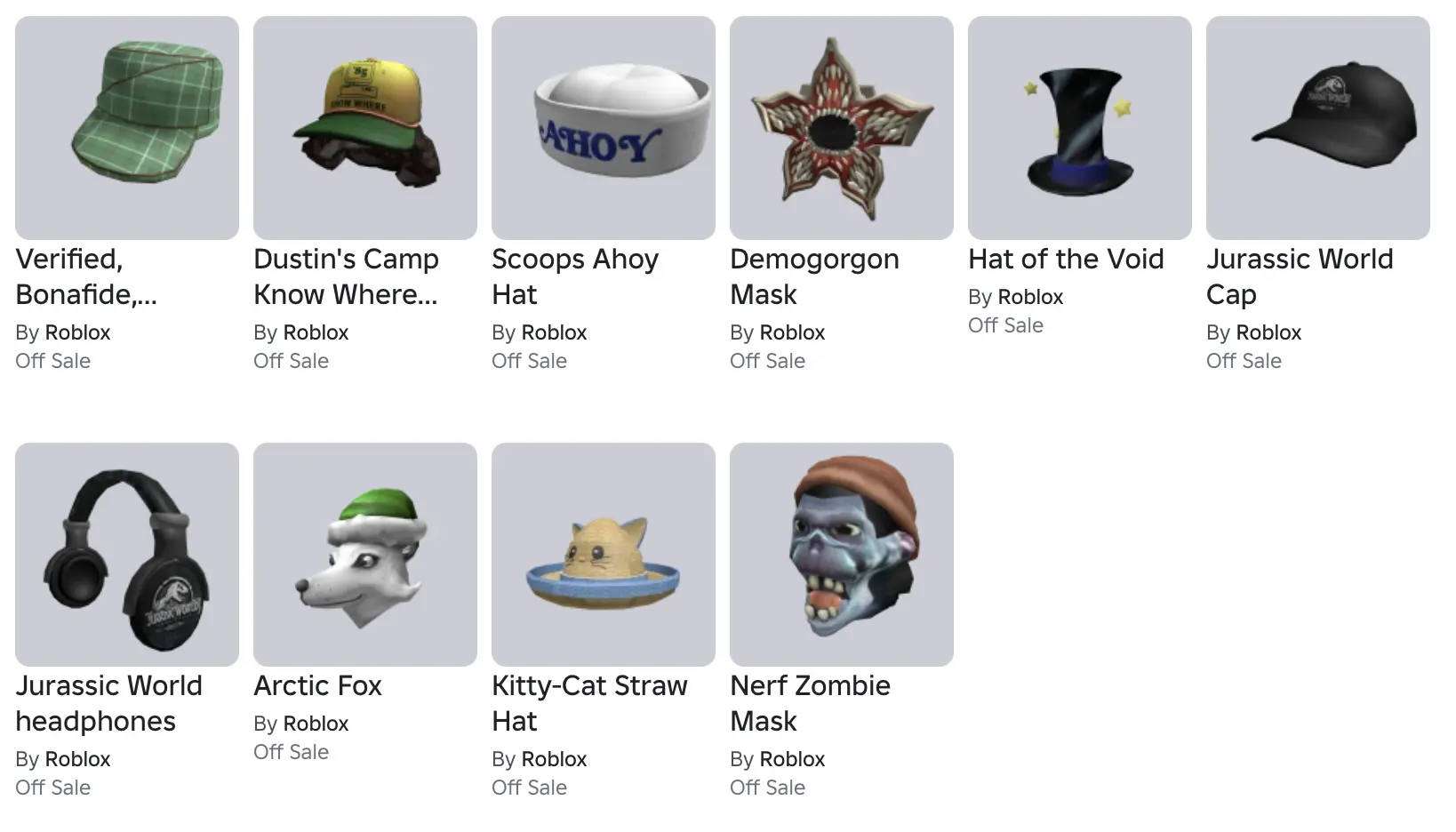 ROBLOX 2016 Account 🔥 24+ Offsales & Limiteds 🔥 Arctic Fox + Nerf Zombie Mask + Kitty-Cat Straw Hat + Jurassic World headphones + Demogorgon Mask + Hat of the Void + Scoops Ahoy Hat + Festive Winter Shades | 0+ Robux SPENT | Instant Delivery ✅