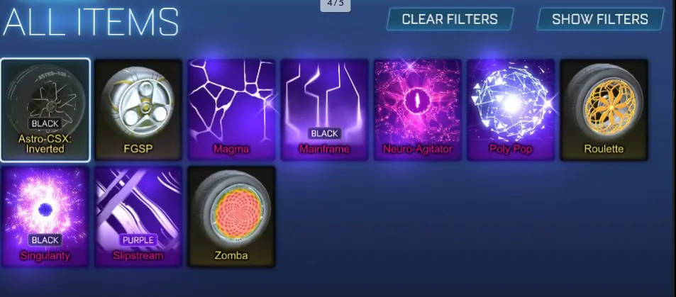 ๐ Stacked RL PC ๐ Purple Fennec ๐จ Black Mainframe & Purple Slipstream ๐ฅ Black Singularity โก๏ธ Zomba + Black Astro-CSX Inverted ๐ 225 Wins & 158 MVPs