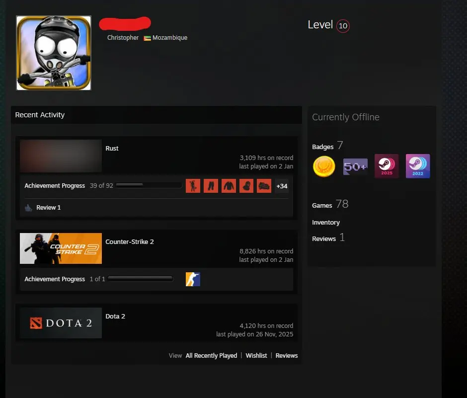 🔥 3000 HOURS 🔥 109 SKINS 🔥 10 LVL STEAM 🔥 NEW ACCOUNT 🔥 FULL DATA CHANGE 🔥 KICK