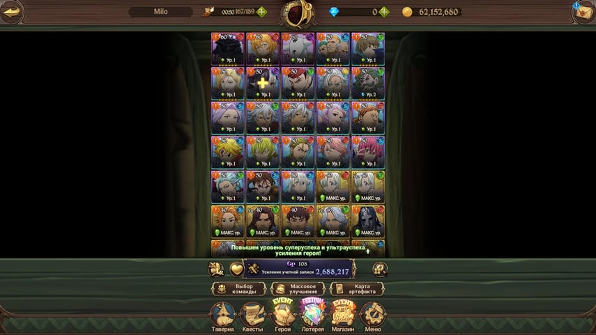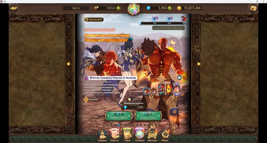 ✧・゚:*✧ 15% OFF ✧・゚:*✧ summer Discounts The Seven Deadly Sins: Grand Cross ⸱ Rank 140, 15.6kk Power, Global Server(#S65208209f) ✧・゚:*✧