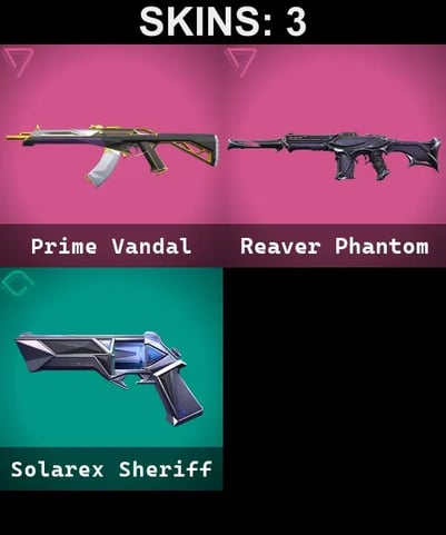3 SKINS | REAVER PHANTOM | PRIME VANDAL | SOLAREX SHERIFF | AP | RANKED READY | 11 AGENTS | FULL ACCESS | SCREENSHOTS INSIDE