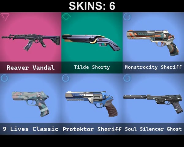 6 SKINS | REAVER VANDAL | TILDE SHORTY | MONSTROCITY SHERIFF | 9 LIVES CLASSIC | PROTEKTOR SHERIFF | SOUL SILENCER GHOST | AP | DIAMOND 2 | 18 AGENTS | FULL ACCESS | SCREENSHOTS INSIDE