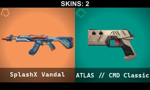 2 SKINS | SPLASHX VANDAL | ATLAS // CMD CLASSIC | NA | BRONZE 3 | 8 AGENTS | FULL ACCESS | SCREENSHOTS INSIDE