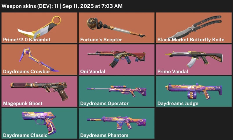 AP | Unranked | Inventory Value 19425 VP | 11 Skins | Prime Vandal | Oni Vandal | Prime//2.0 Karambit | Fortune's Scepter | Black.Market Butterfly Knife | Daydreams Crowbar | Full Access #2186