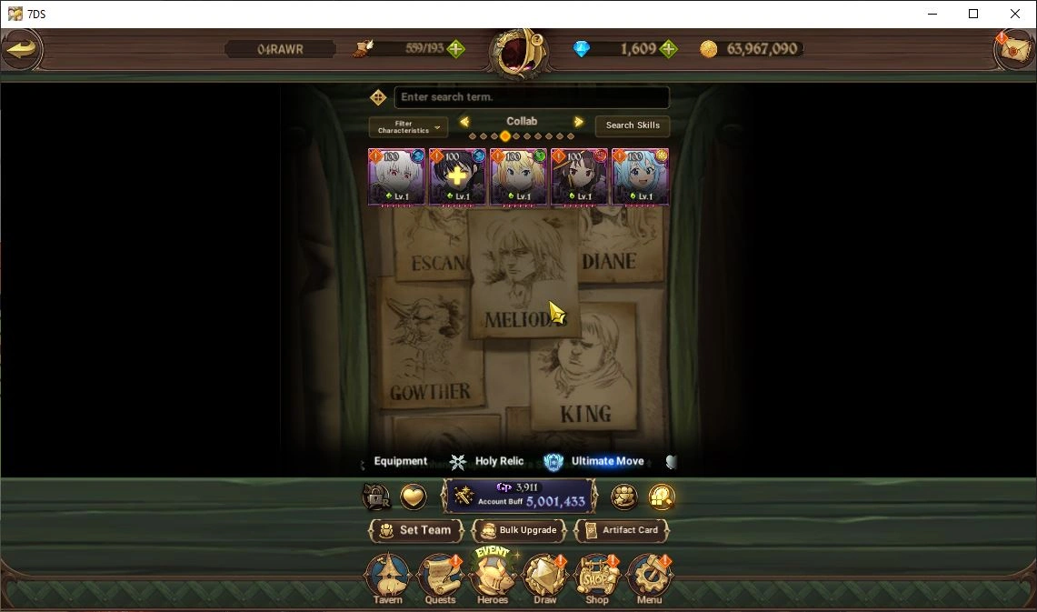 Global|5 M CC|1609 Dm|3 LR+8 UR+ Collab FF,Konosuba|Roxy2/6,Brunhhild,Elizabeth,Meresca,Tristan,ODK,Mael,Etc|Code Only|(SDS4190)