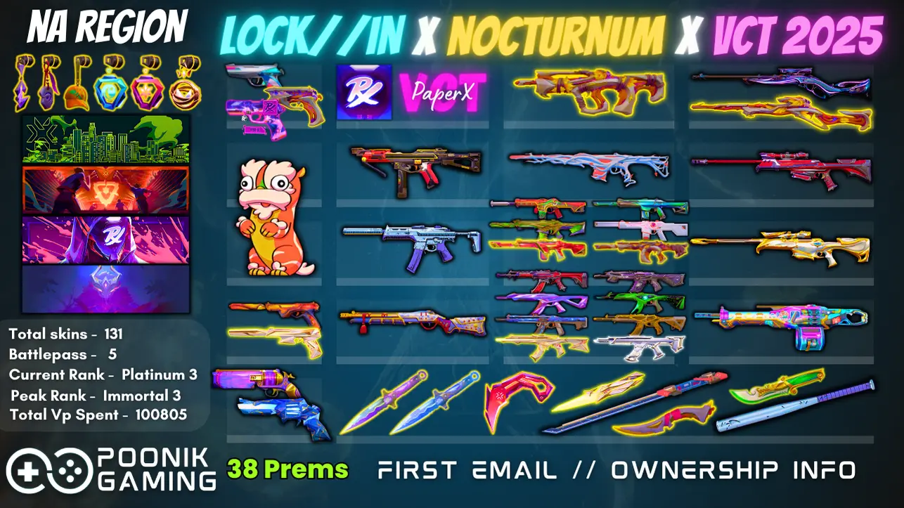 1400 US$ SPENT โธฑ NA REGION | VCT KNIFE, VCT 2025 KNIFE, BETA REMASTERED KNIFE, EX-IMMORTAL| WITH FIRST EMAIL! [VNA197]