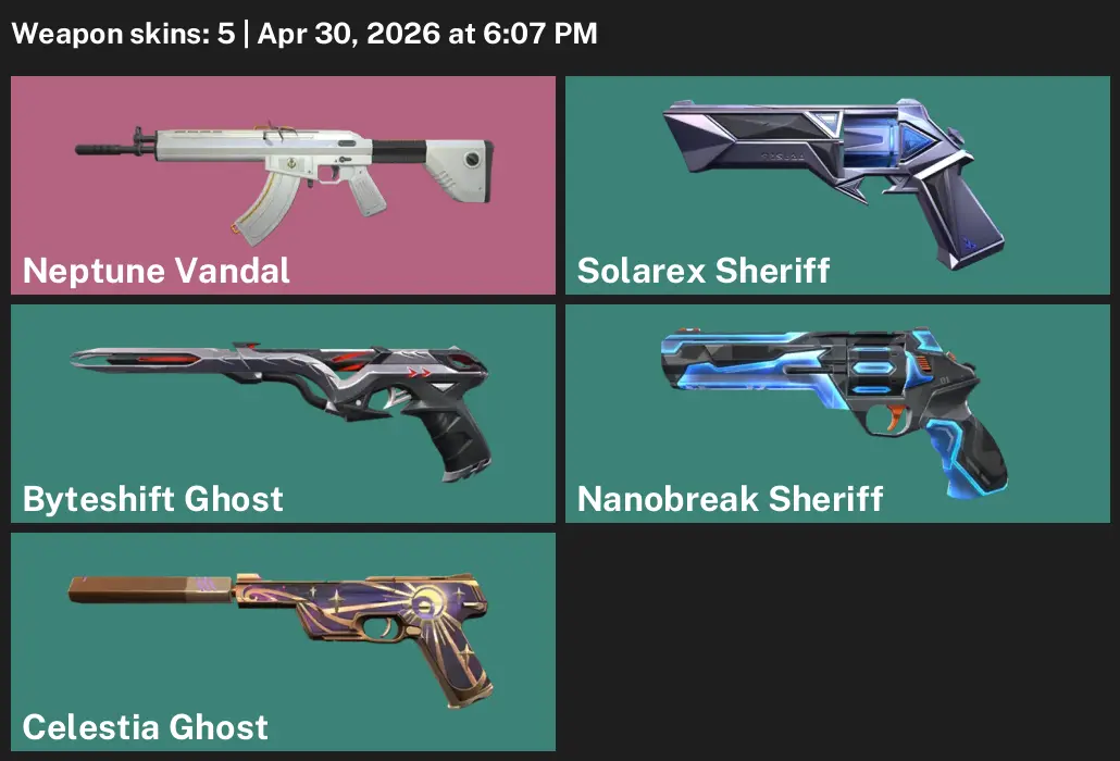 AP | 5 Skins | exp GOLD 1 | Neptune Vandal | Solarex Sheriff | Byteshift Ghost | Nanobreak Sheriff | Celestia Ghost | #FRE4901