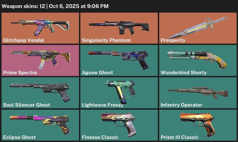 AP | Unranked | Inventory Value 10175 VP | 13 Skins | Prime Vandal | Singularity Phantom | Spectrum Bulldog | Recon Phantom | Recon Ghost | Comet Spectre | Full Access #3357