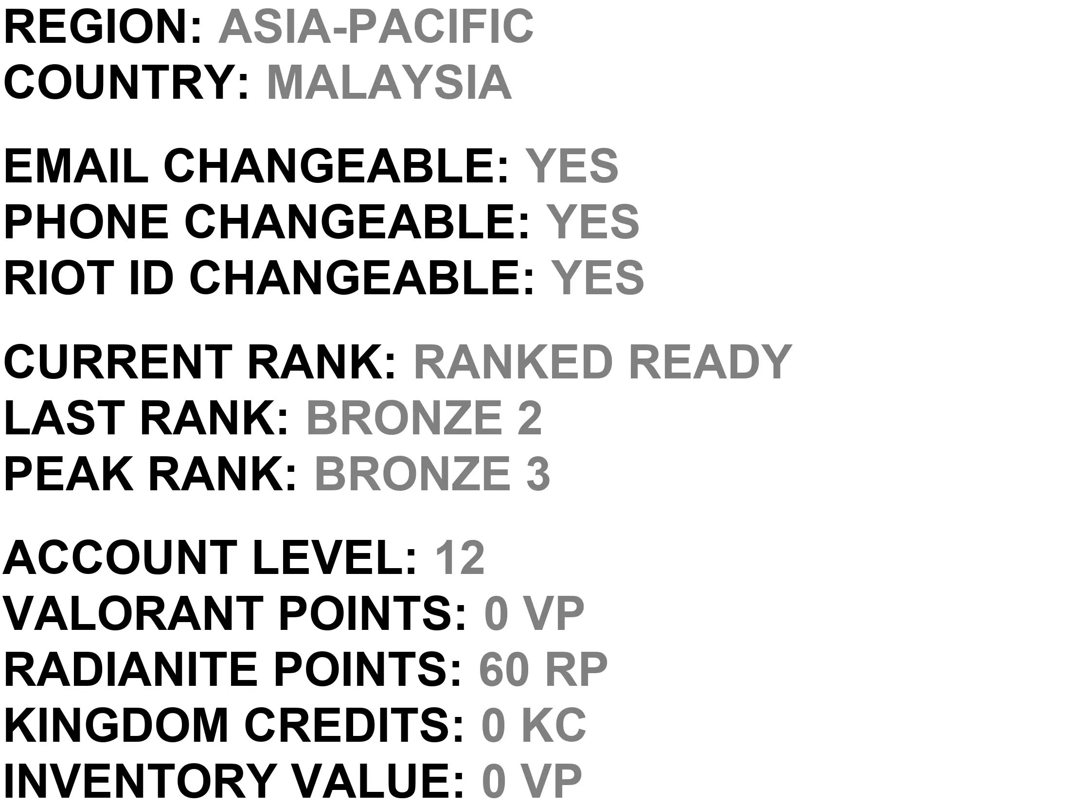 ASIA/SEA/OCE | Bronze Ranked Smurf | Ranked Ready | Expired EP3 ACT 2 | Full Access/Data Change | No Bots/Cheats | Instant Delivery