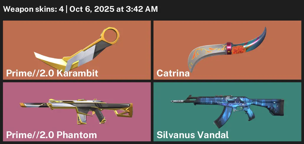 EU | Unranked | Inventory Value 9150 VP | 4 Skins | Prime//2.0 Karambit | Catrina | Prime//2.0 Phantom | Silvanus Vandal | Full Access #1601