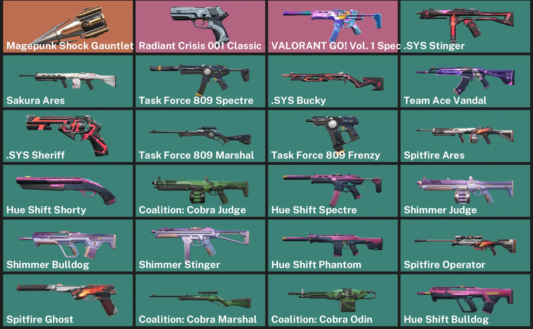 ๐EU ๐ฎ UNRANKED โ๏ธ Magepunk Shock Gauntlet โจ Radiant Crisis 001 Classic โจ VALORANT GO! Vol. 1 Spectre ๐งฉ .SYS Stinger โจ Sakura Ares & More