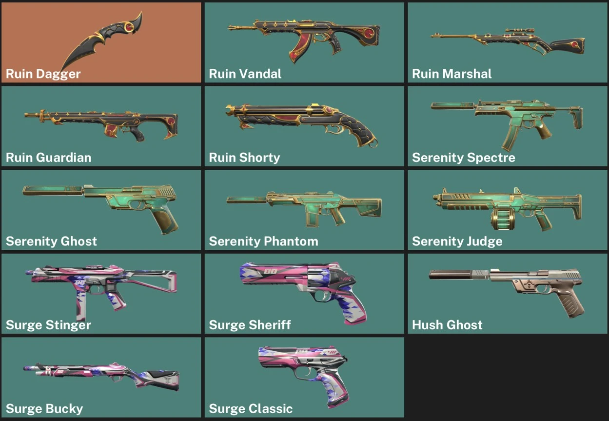 NA ⸱ LVL 72 ⸱ UNRANKED ⸱ 1 KNIFE ⸱ 14 SKINS Ruin Dagger, Ruin Vandal, Ruin Guardian, Serenity Phantom