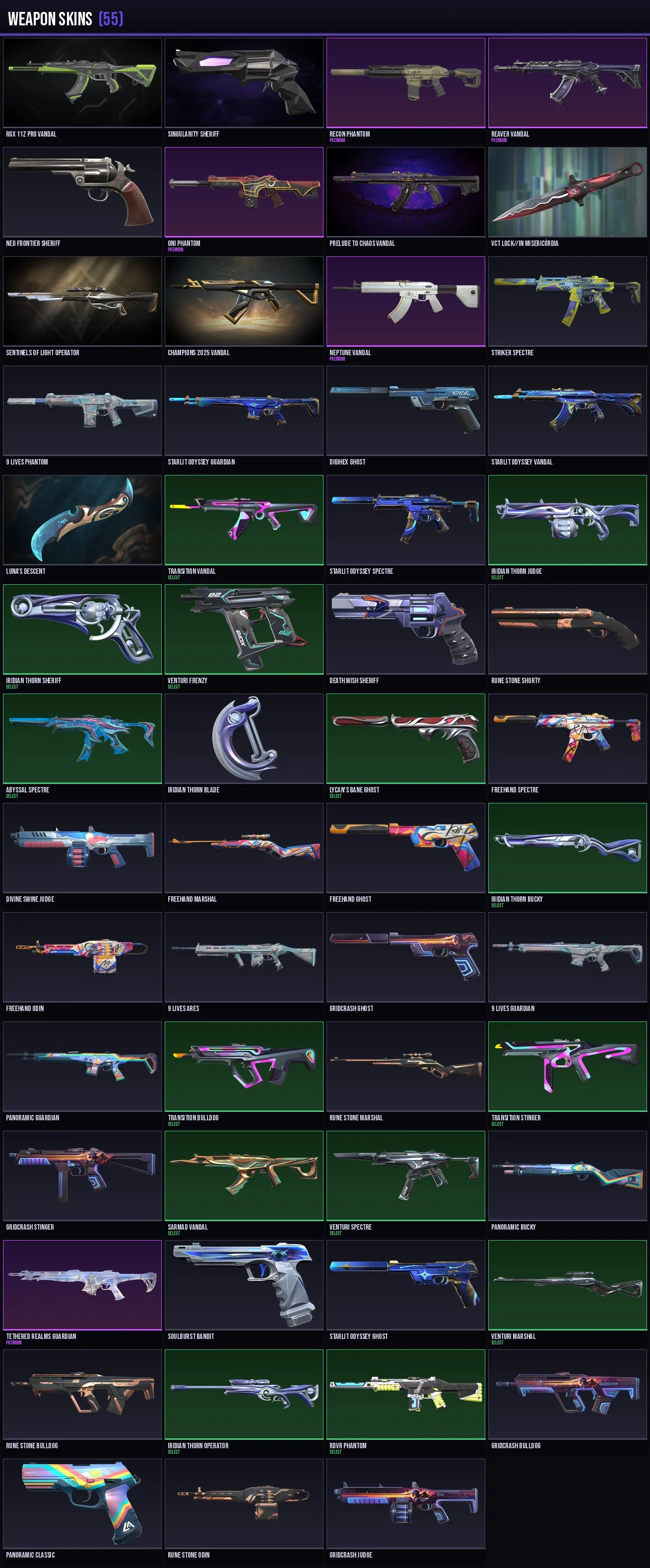 VCT LOCK//IN Misericรณrdia / Champions 2025 Vandal / Recon Phantom / RGX 11z Pro Vandal / Oni Phantom / Prelude to Chaos Vandal / Singularity Sheriff