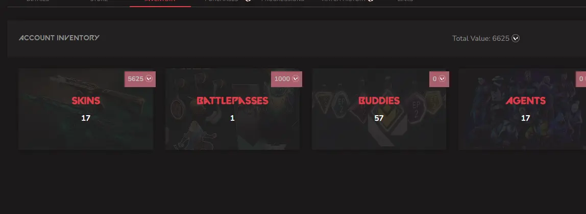 🔹 Server:EU ⸱ 🔹 Current Rank:UNRANKED ⸱ 🔹 Vandals:origin.endeavour ⸱ 🔹 Phantoms:radiant entertainment system ⸱ 🎭 Agents Owned:22- Total Value: 6625 vp