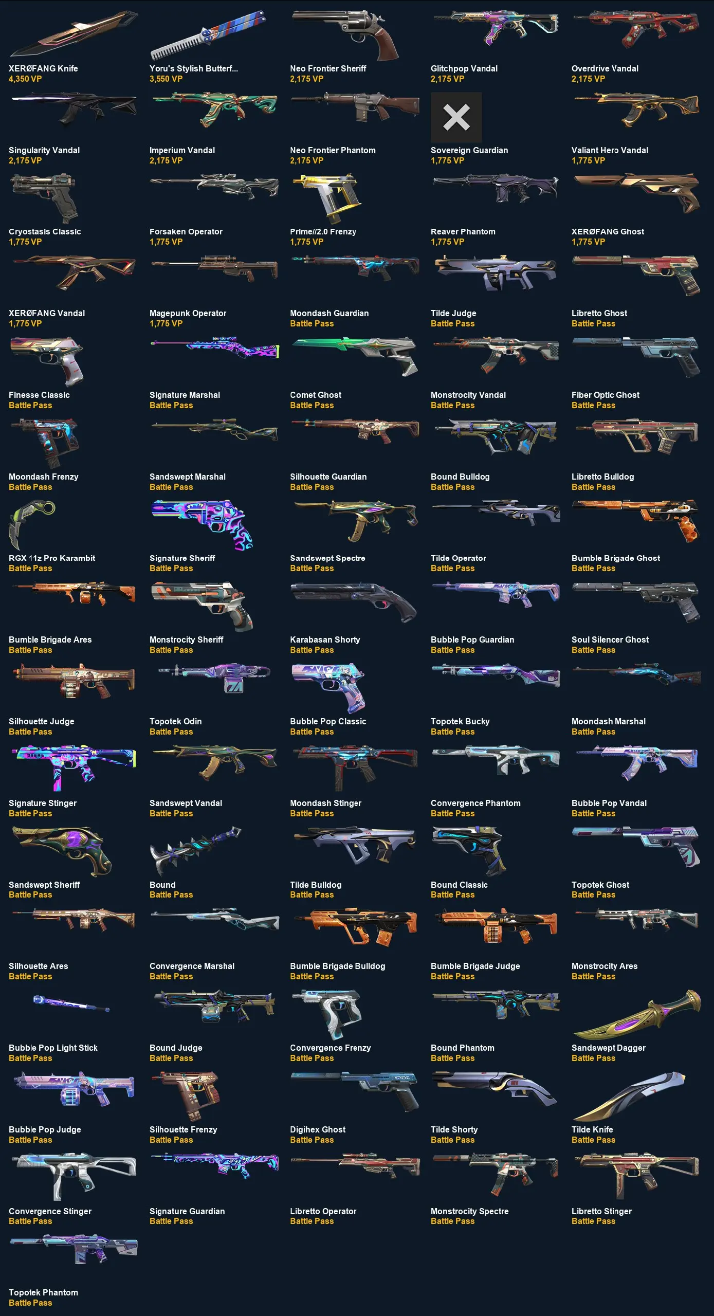 VA2602 EU XEROFANG Knife+RGX 11z Pro Karambit+Singularity Vandal+Neo Frontier Sheriff+Overdrive+Valiant Hero+Forsaken