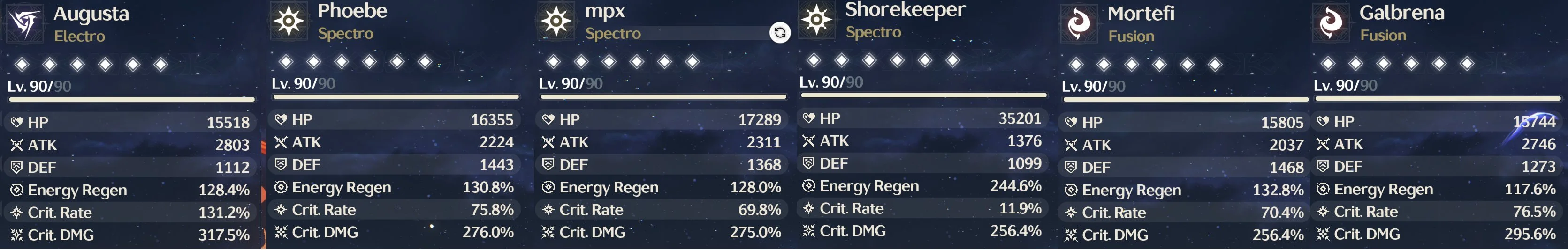 Wuthering Waves ⸱ Galbrena + sign Phoebe c6 + sign Augusta c2 + Verina c1 | Europe Server(#S54648569f)