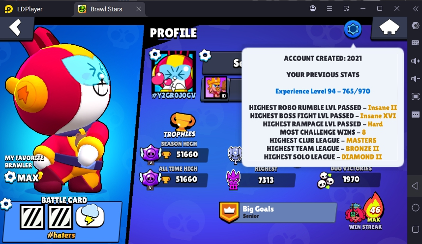 168 SKINS 💯 51.660 TROPHIES 🏆 89 BRAWLERS 🐼 9 HYPERCHARGED 🩸 11 MAX BRAWLERS 💛 WHITE WOLF LEON 🩵 BORN BAD BUZZ 🩵 FILMMAKER BUZZ 🩵 KABOCHA FANG 🩵 LOKI CHESTER 💯