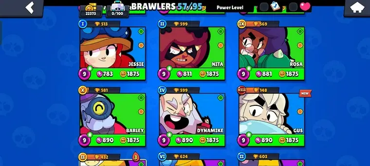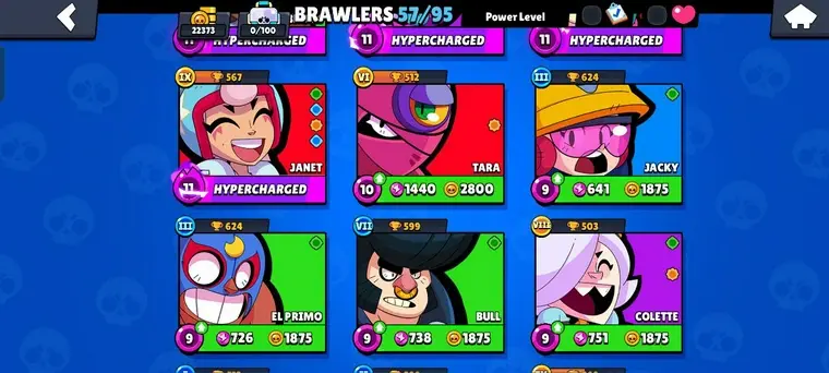⬟ 22K TROPHIES ⍟ 57 BRAWLER ⧫ 7 MAX ⌲ 16 HYPERCHANGE (MAX+ READY TO UNLOCK) ⦿ 70 GEMS ◴ 70+ SKINS | NBS29