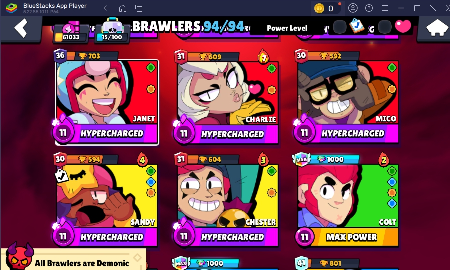247 SKINS ⭐ 61.000 TROPHY ⭐ 94 BRAWLERS ⭐ 34 MAX ⭐ 23 HYPERCHARGED ⭐ VALKYRIE JANET ⭐ RONIN RUFFS ⭐ GUARD RICO ⭐ SKELETAL SURGE ⭐ OCTO FANG ⭐ SPIKE ⭐ LEGENDARY ⭐ LEON