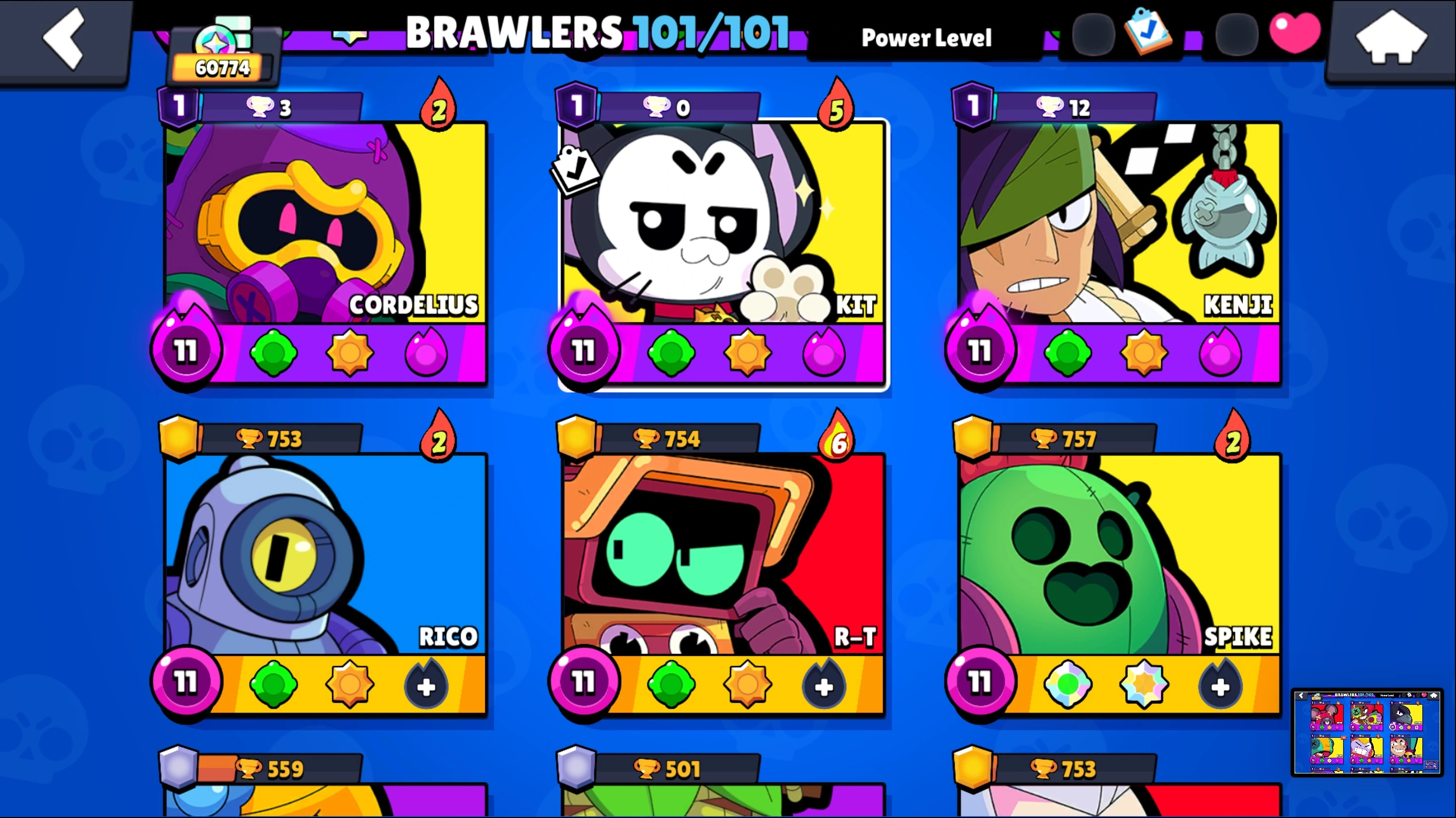 287 SKINS ⭐ 60.800 TROPHY ⭐ 101 BRAWLERS ⭐ 27 HYPERCHARGED ⭐ 30 MAXED BRAWLERS ⭐ 25 PRESTIGE ⭐ 27 BUFFIES ⭐ KITBOXER ⭐ IMPIE COLETTE ⭐ MECHA MORTIS ⭐ POOP SPIKE ⭐ CUPID PIPER ⭐ LEGENDARY ⭐ 60K