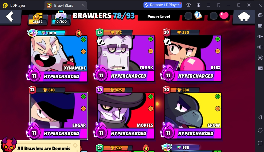 90 SKINS 💯 FURIOUS FANG ❤️ 28.852 CUPS 🏆 78 BRAWLERS 🐼 6 HYPERCHARGED 🩸 12 MAX BRAWLERS 💛 LAMBENT MORTIS ❤️ THOR BIBI ❤️ KNOGHT AMBER ❤️ KNOGHT DOUG ❤️ RONIN RUFFS  💯