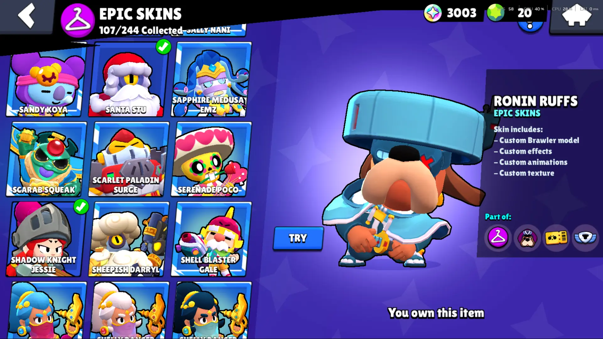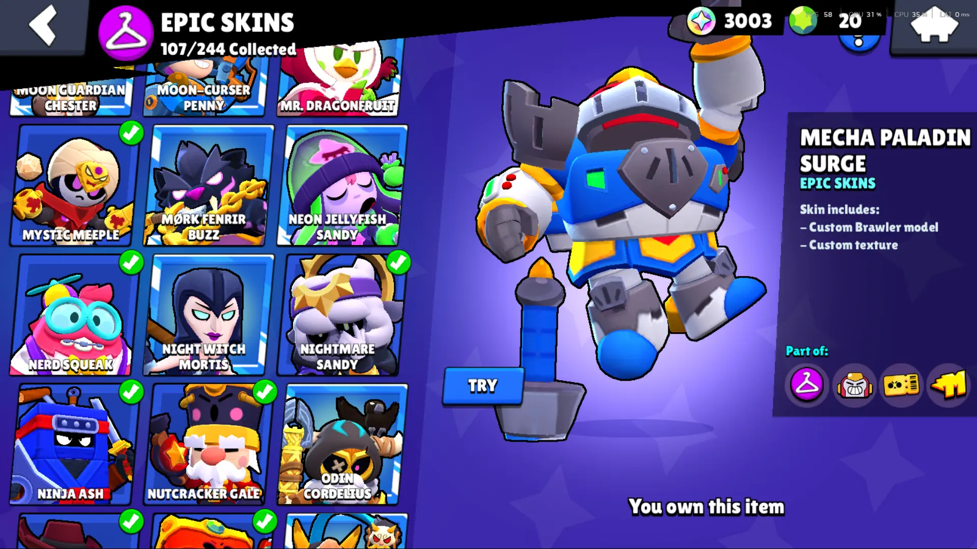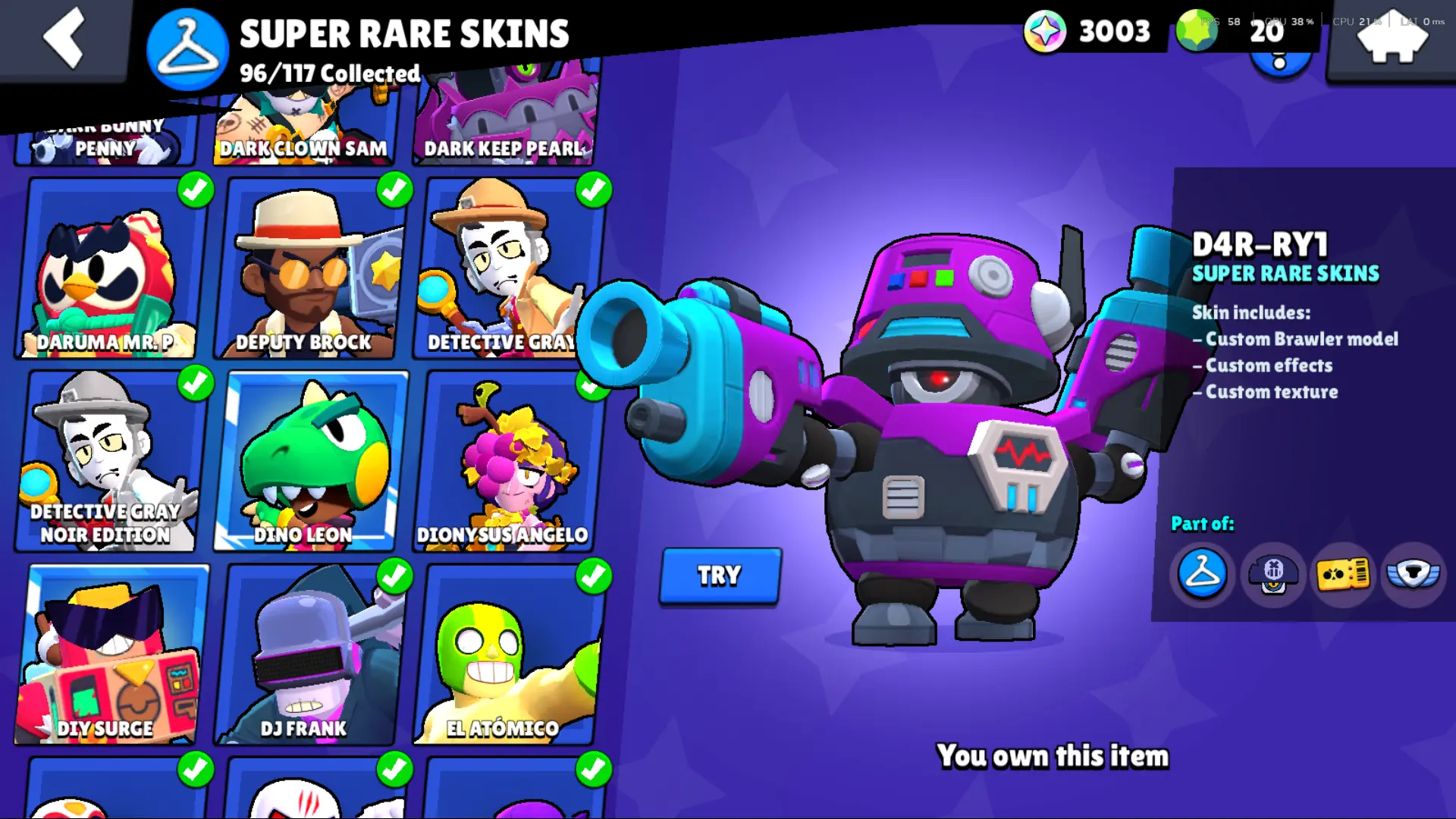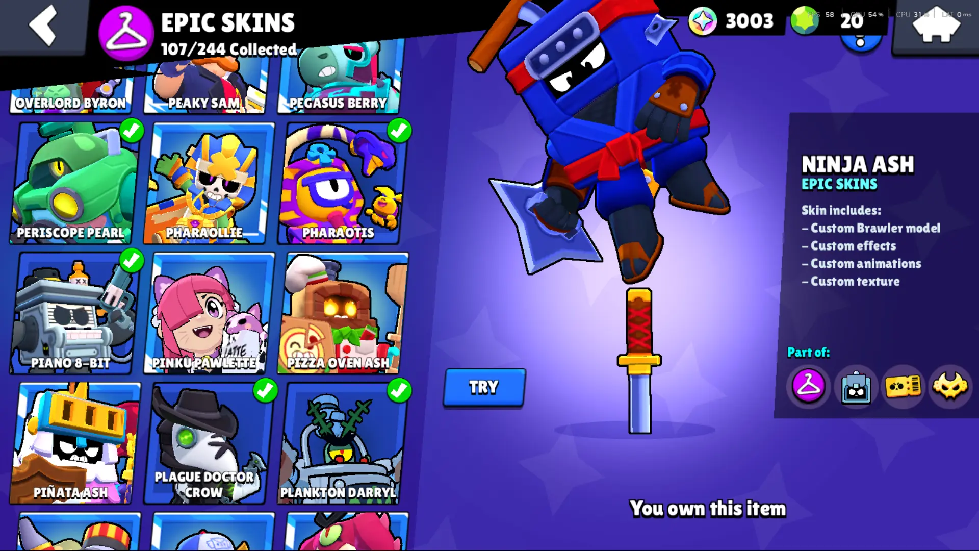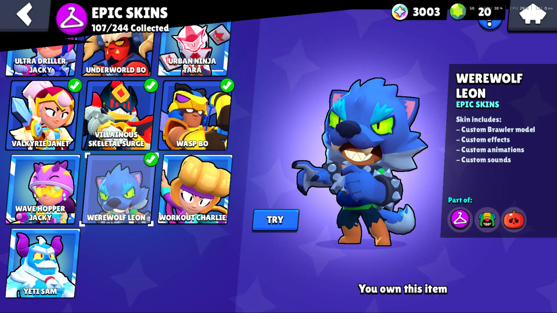 Bs 79k🏅Werewolf Leon ⸱ Almost max ✅ Ronin Ruffs . Ninja ash ⸱ mecha surge 🔥96 max ✅ 340 skins .70k power points ✅ 74 hypercharges