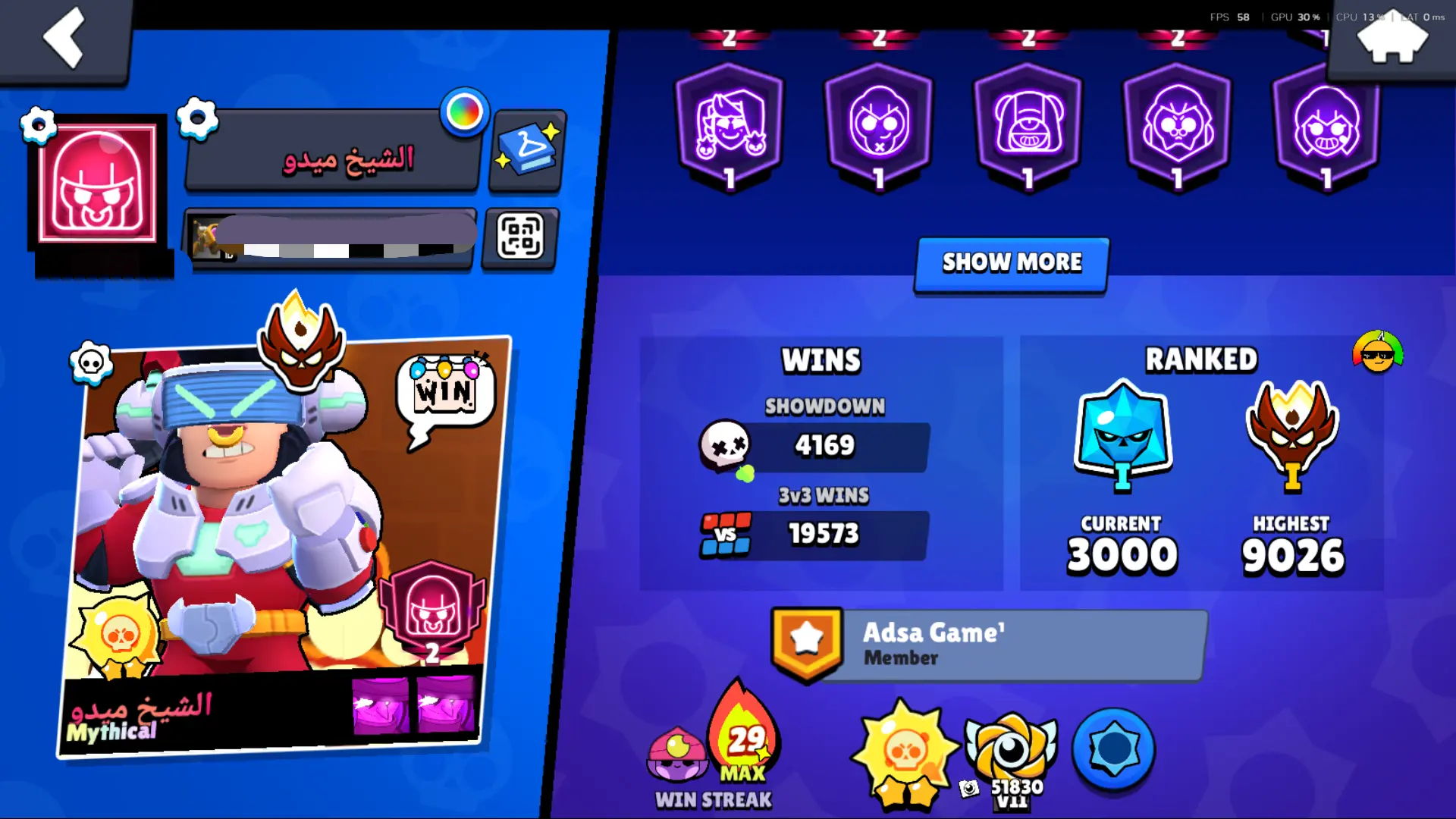 Bs 86k . OLD . NEW Masters 🔥 PLAYER ID CHANGEABLE 🔥 65 max ✅ 410 skins ✅ 93 hypercharges . 27 buffies