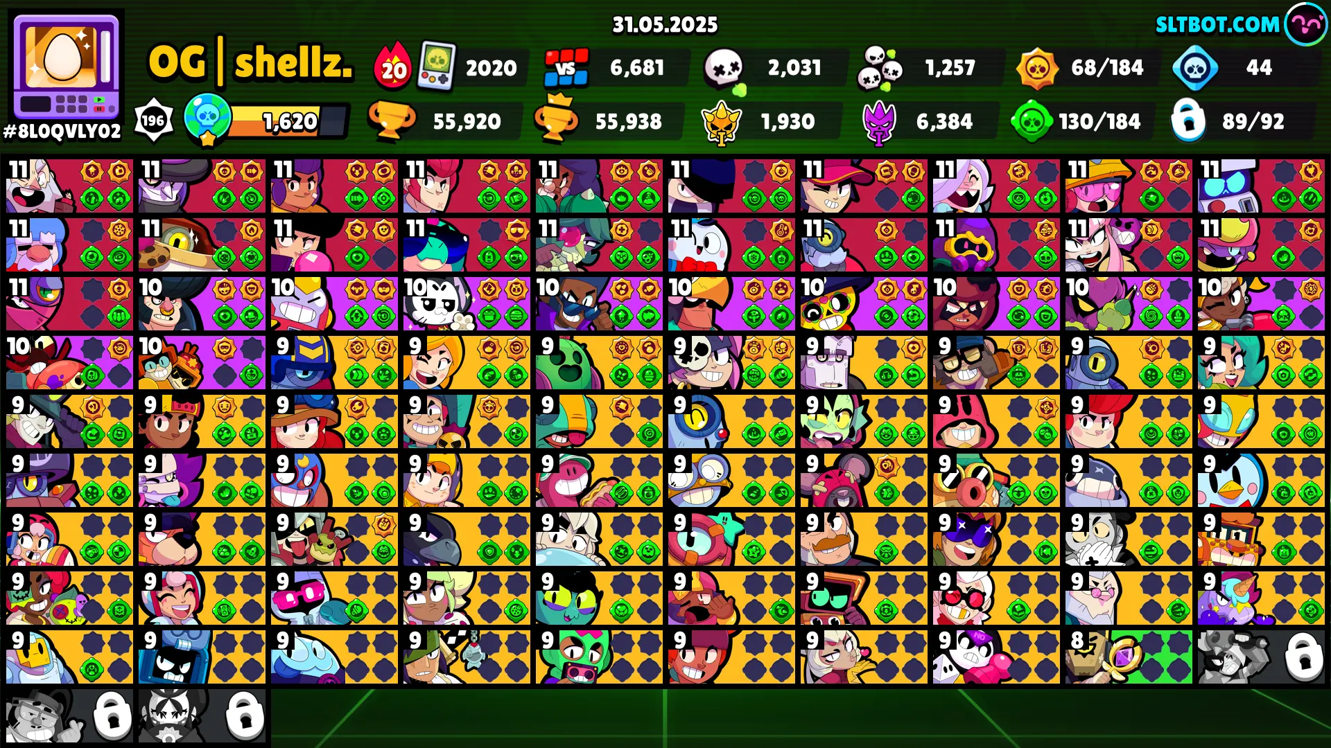 MATCHERINO PIN ⭐ 11.11 PIN ⭐ 213 SKINS ⭐ 55.900 TROPHY ⭐ 89 BRAWLERS ⭐ 21 MAX ⭐ 20 HYPERCHARGED ⭐ MOON-CURSER PENNY ⭐ SPACE OX BULL ⭐ CHAINSAW BUSTER ⭐ DIY SURGE ⭐ OCTO FANG ⭐ SPIKE ⭐ LEGENDARY ⭐ LEON