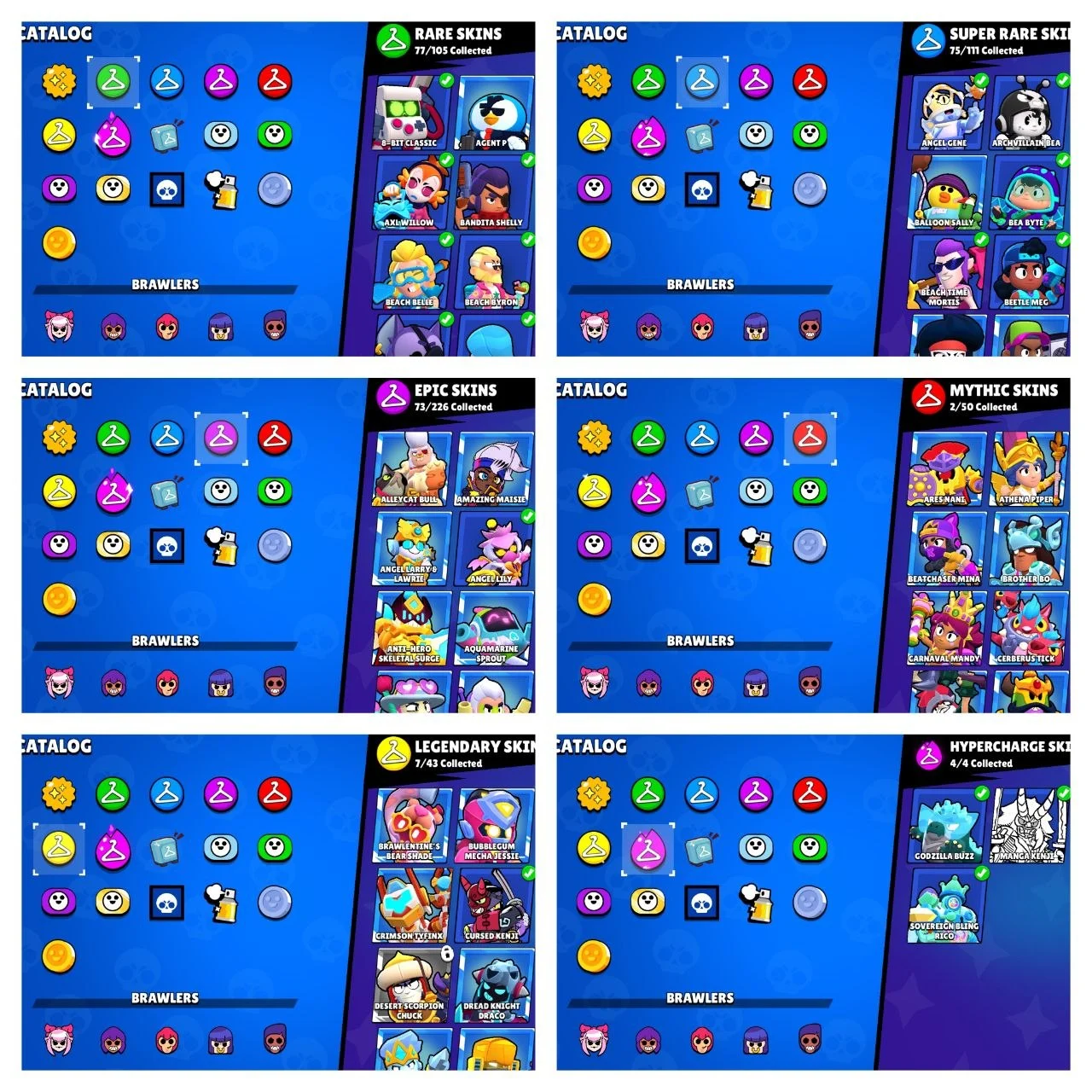 TROPHY 50K-BRAWLER 95-MAX BRAWLER 34-HYPERCHARGE 27-ICON 360-SKINS COLLECTION 235-OLD COLLECTION AVAILABLE-BEST-DEAL